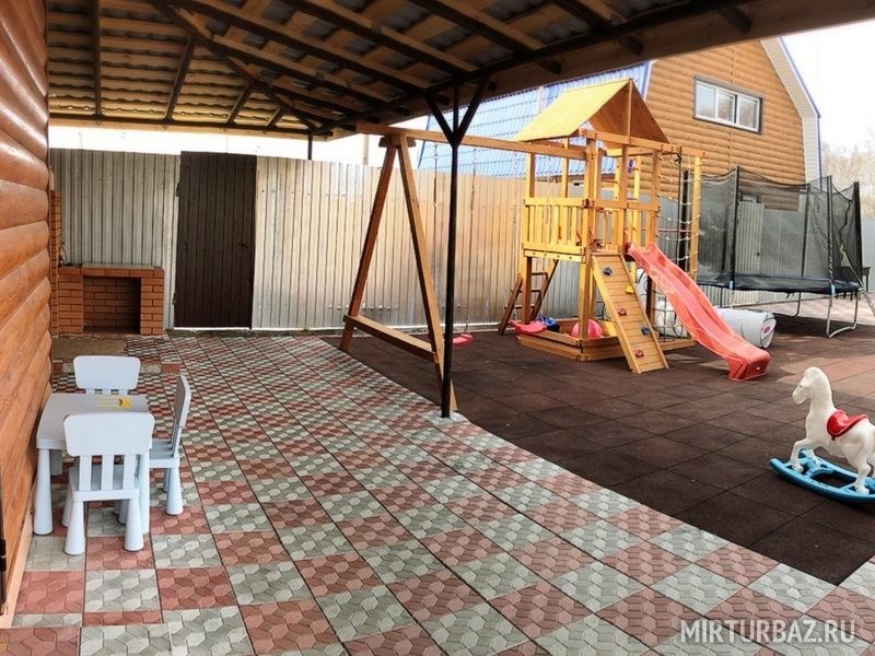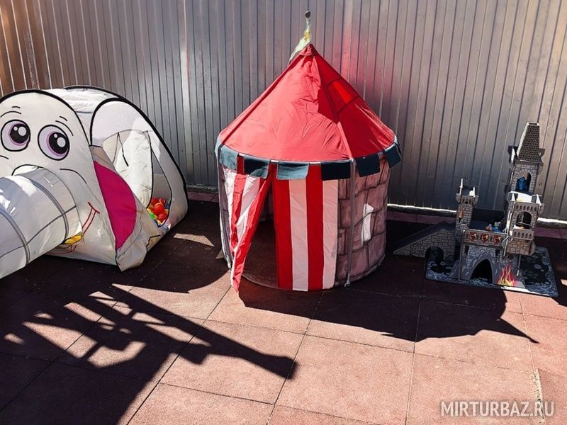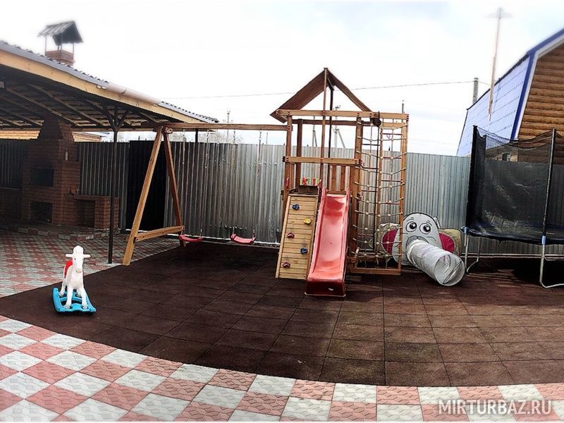 Детская игровая площадка с прорезиненым безопасным покрытием. В наличии детские самокаты и велосипед для детей до 5 лет.