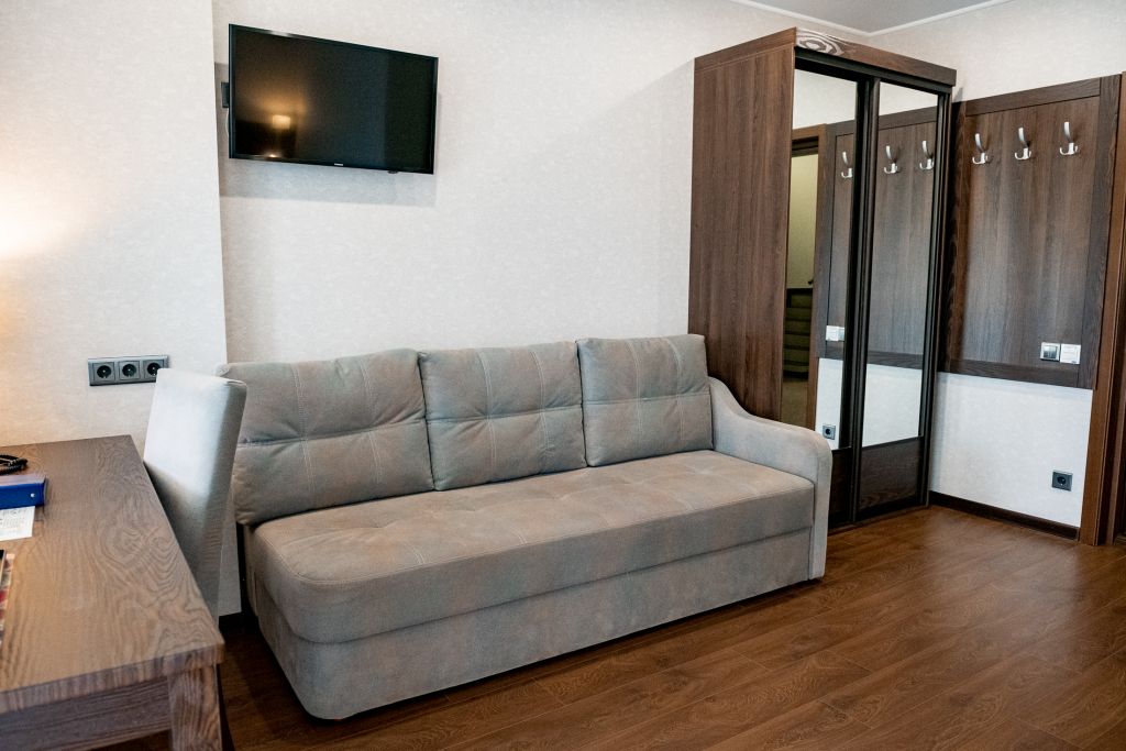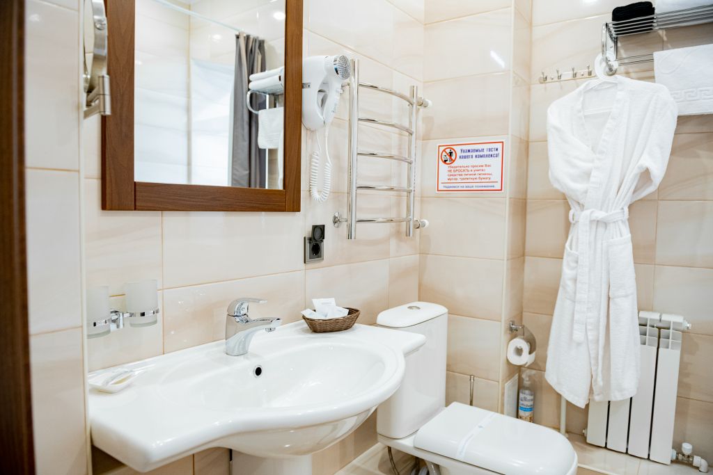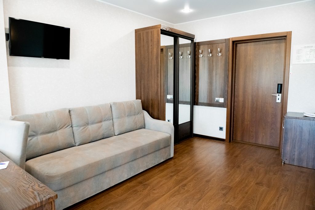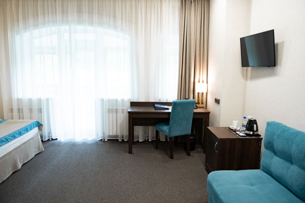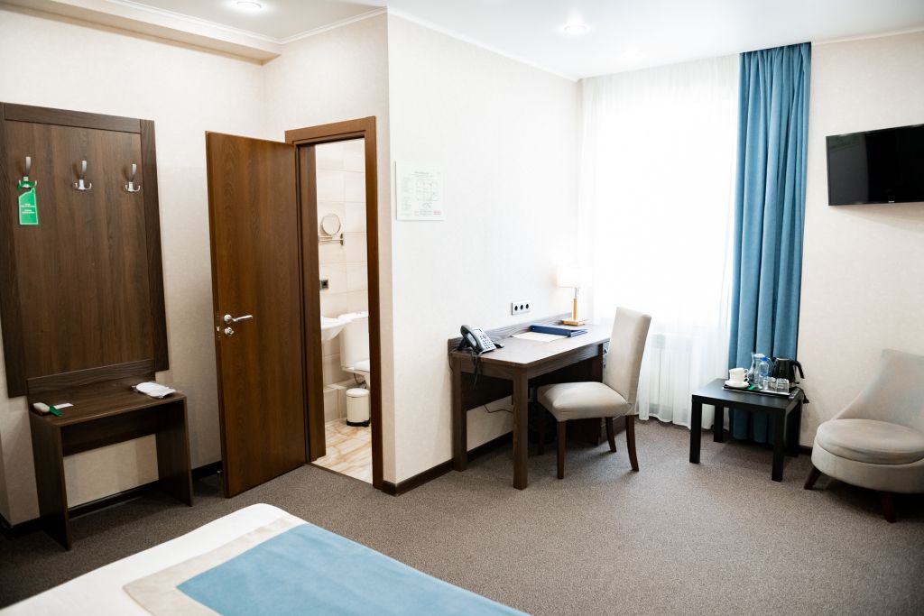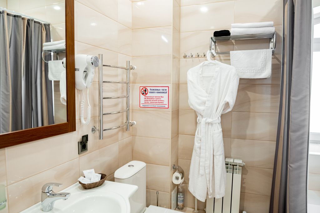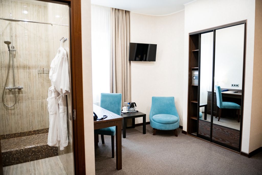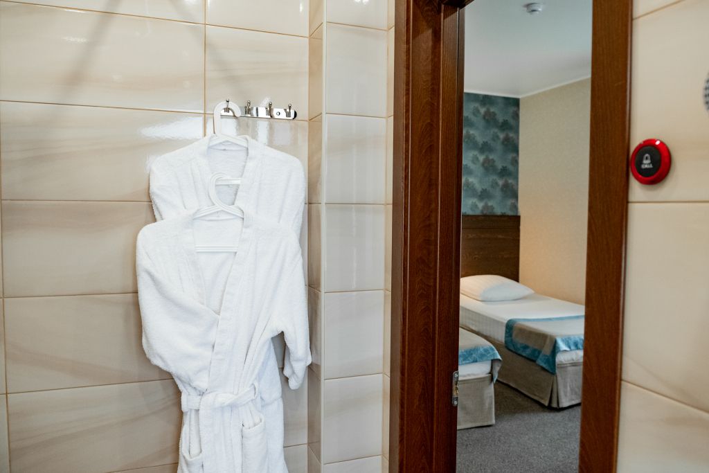 В номере вас будут ждать телевизор и халат. Оснащение зависит от выбранной категории номера.