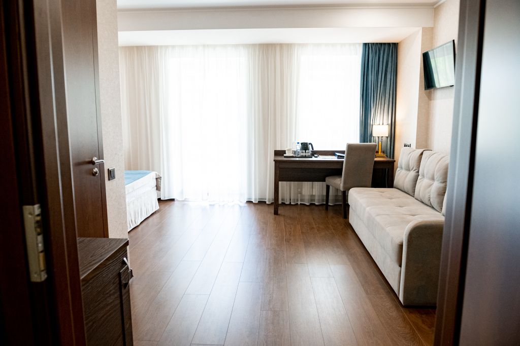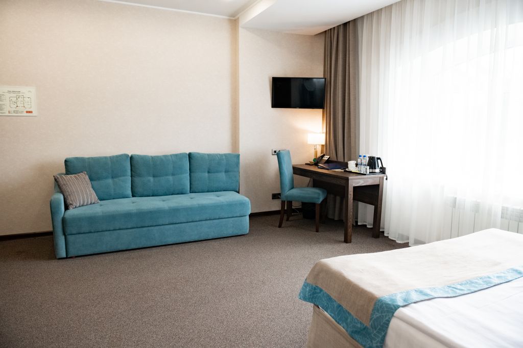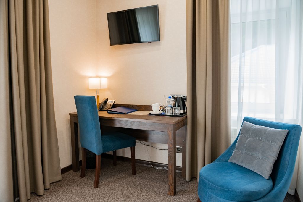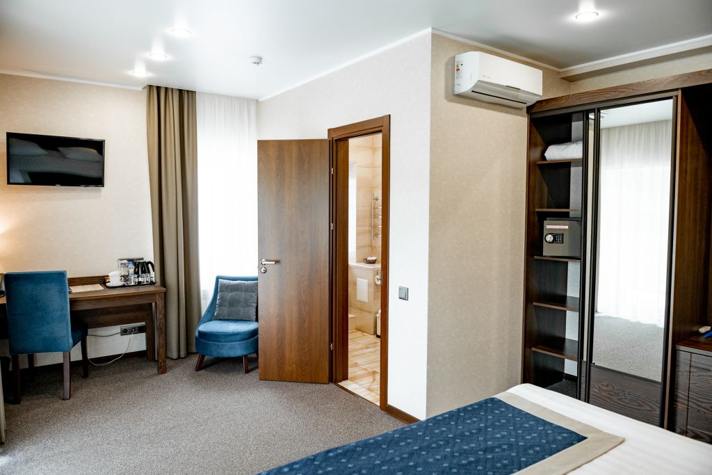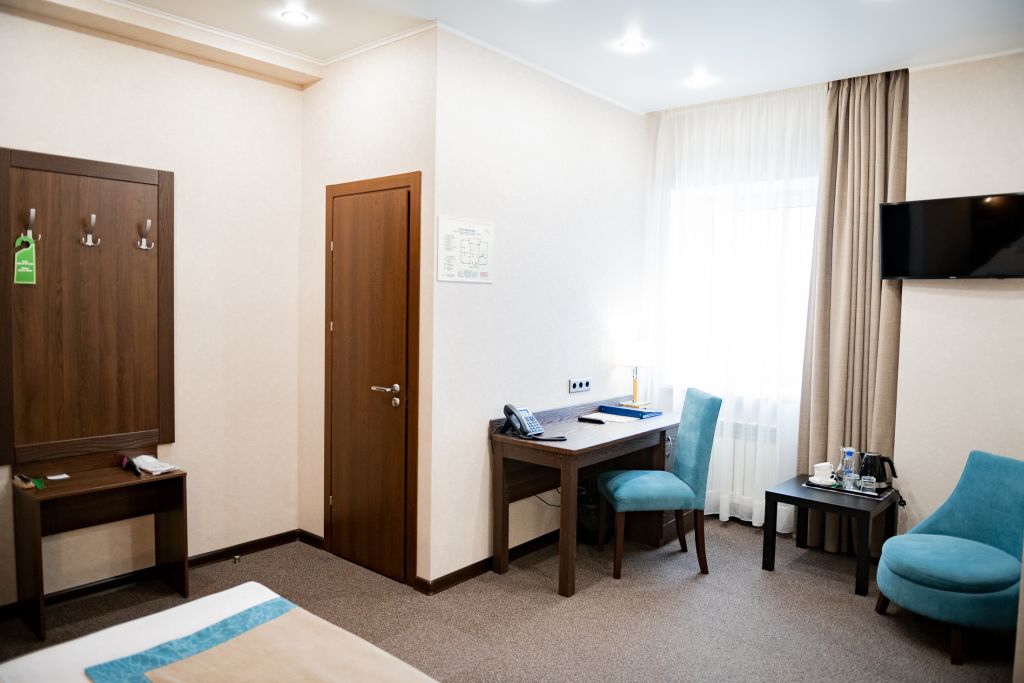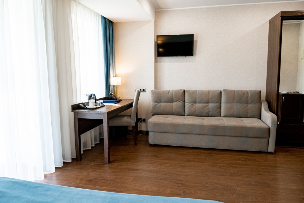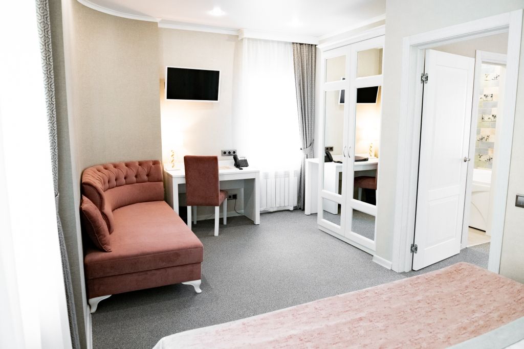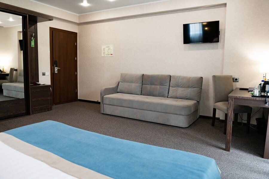 В номере вас будут ждать телевизор и халат. Оснащение зависит от выбранной категории номера.