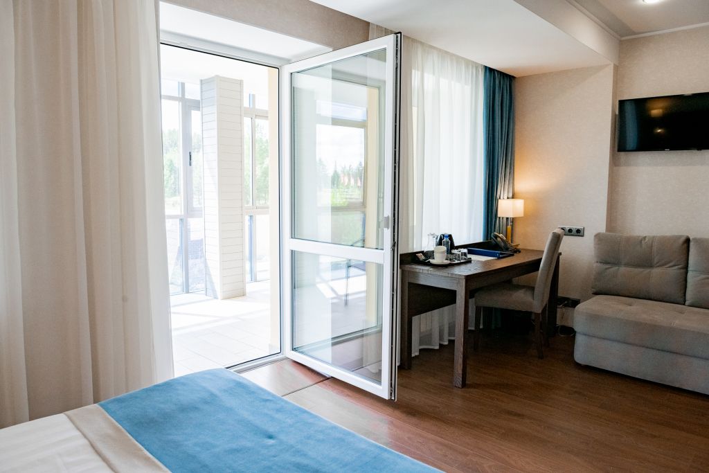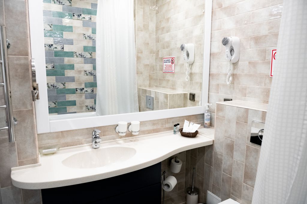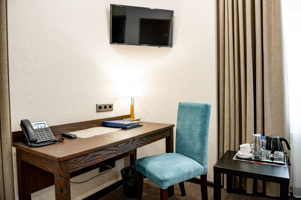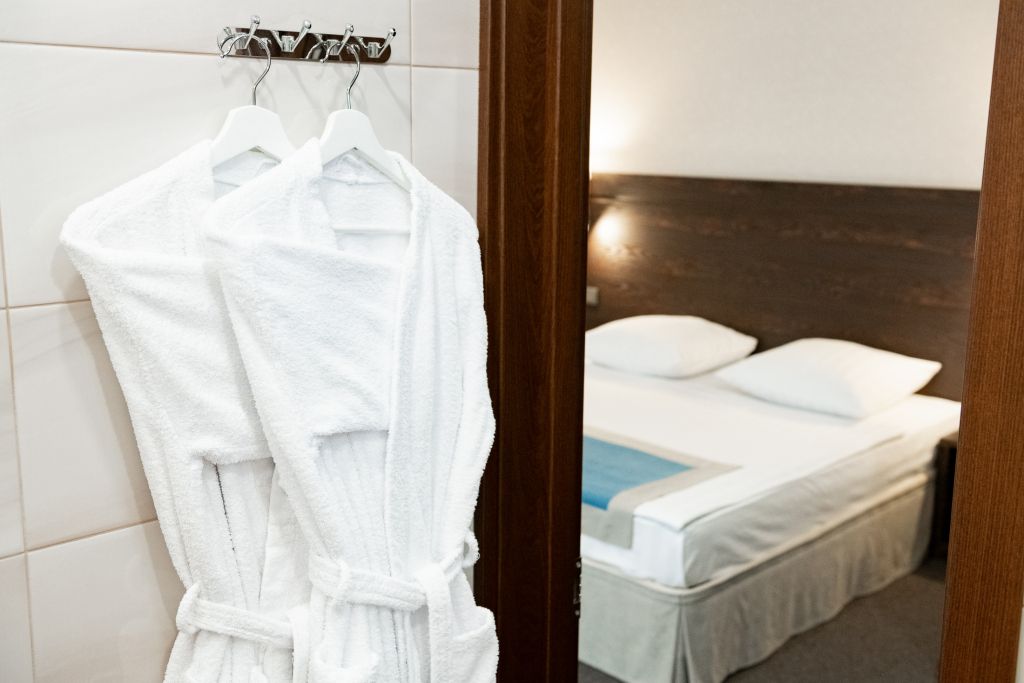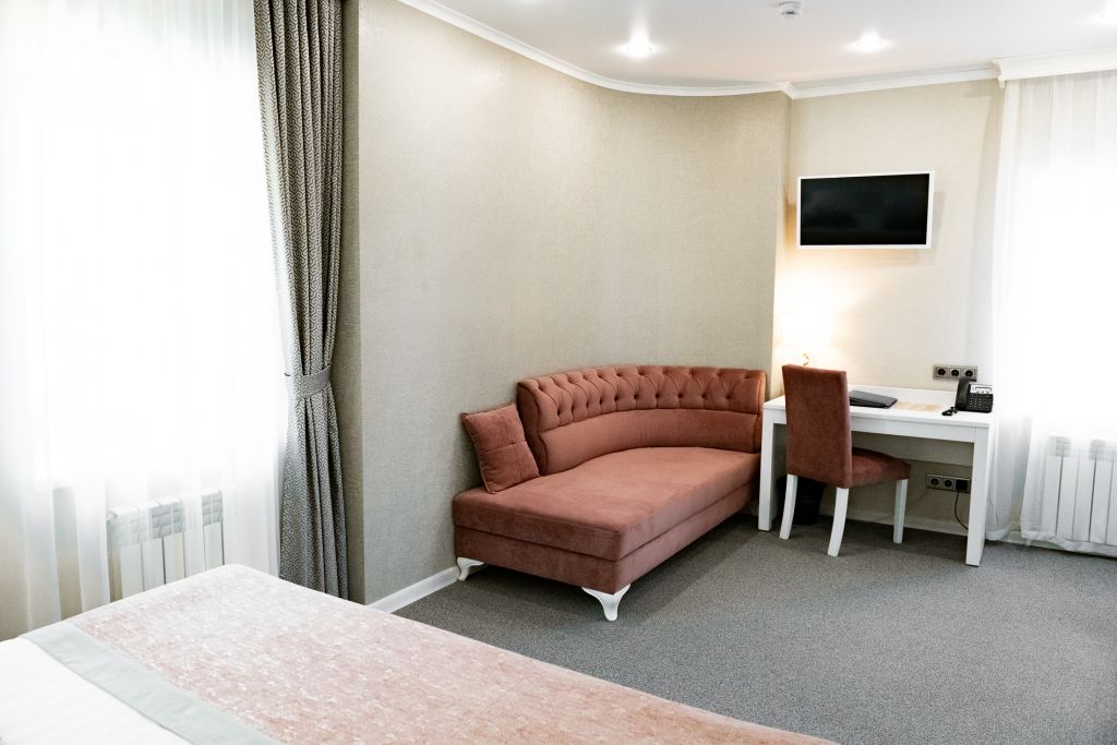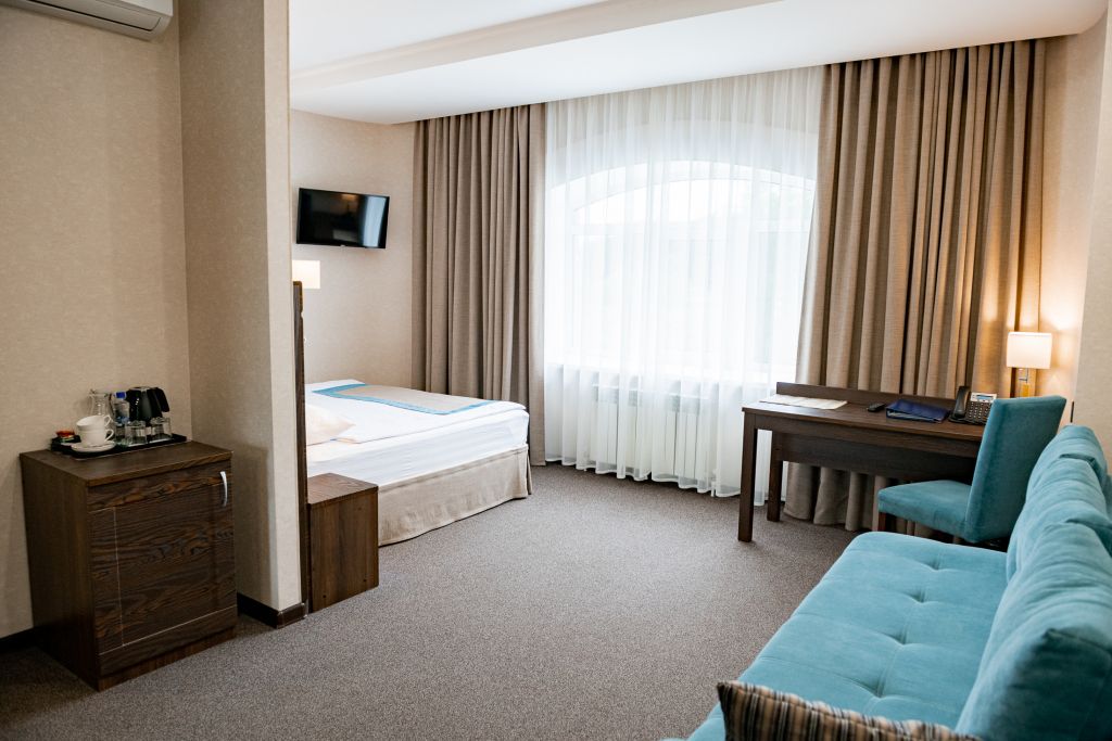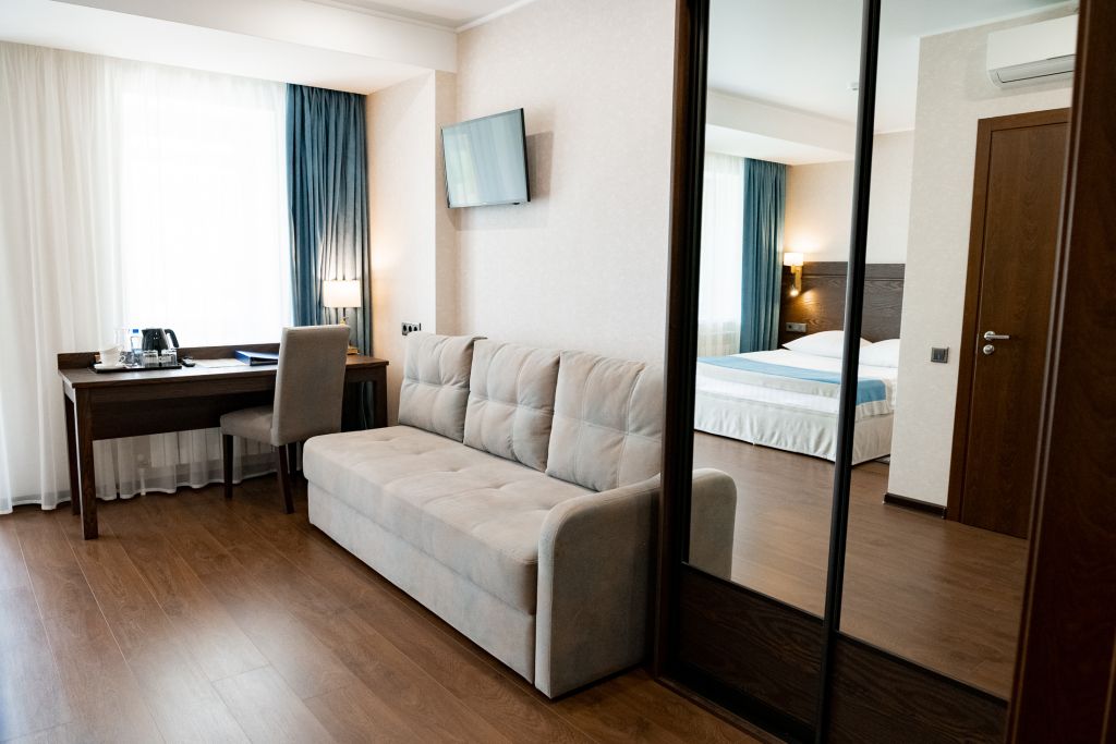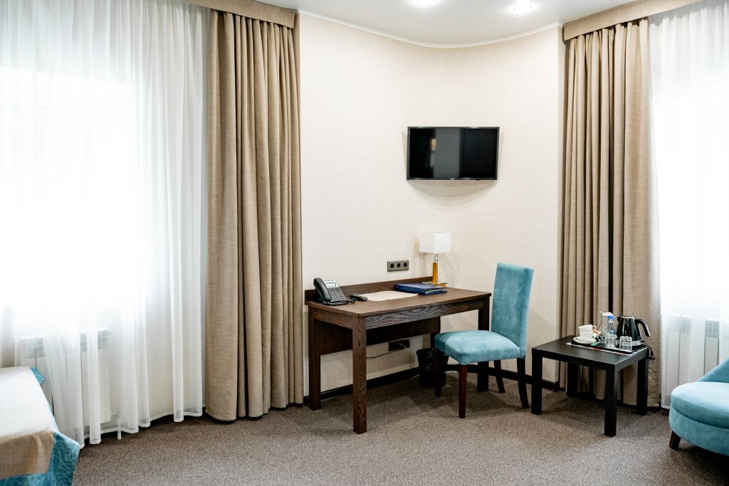 В номере вас будут ждать телевизор и халат. Оснащение зависит от выбранной категории номера.