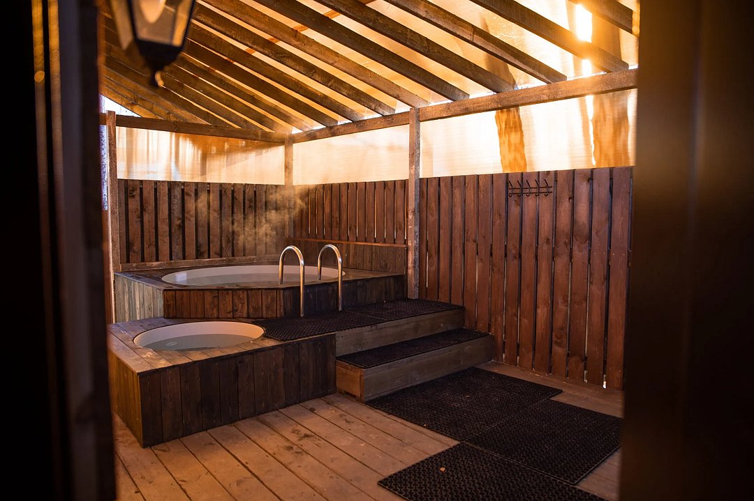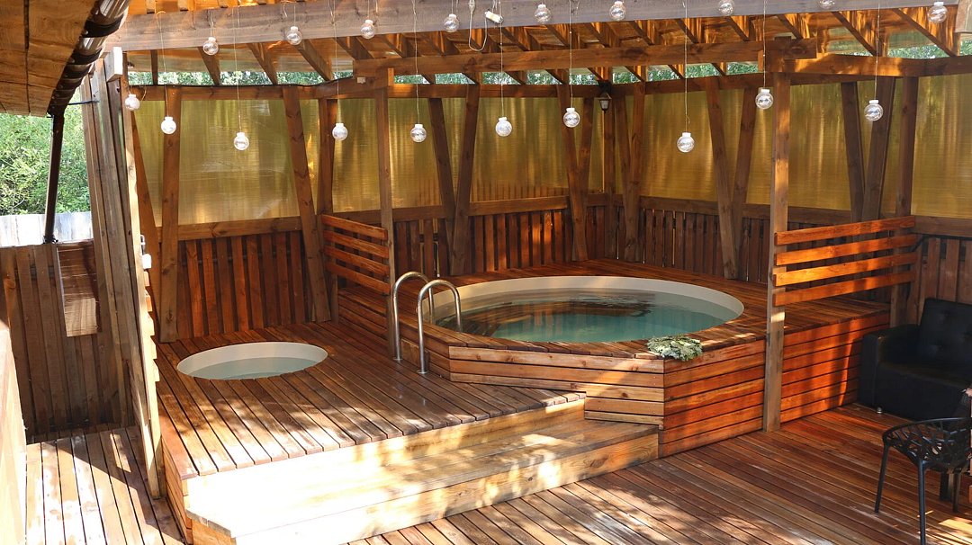 - Три русские бани предлагают просторные парные, тёплые бассейны с джакузи, купели и комфортные зоны отдыха, а также террасы и мангалы для душевных встреч.