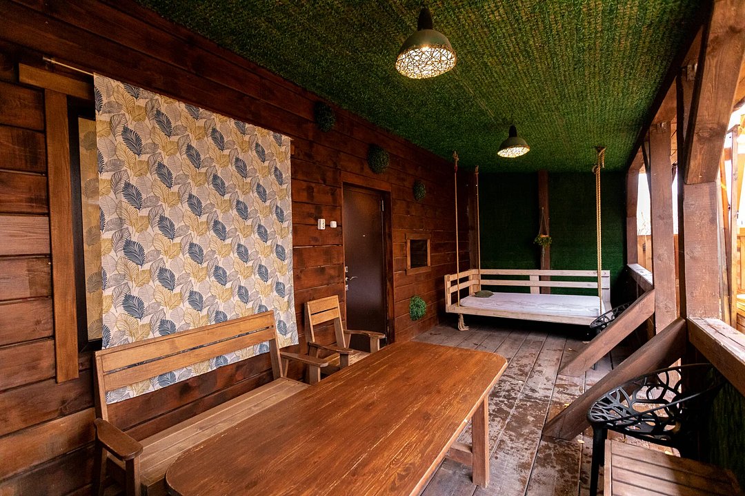 - теплой атмосфepой, уютным дизaйном в стилe кантpи, закрытым двориком с выходом в мини-садик;
