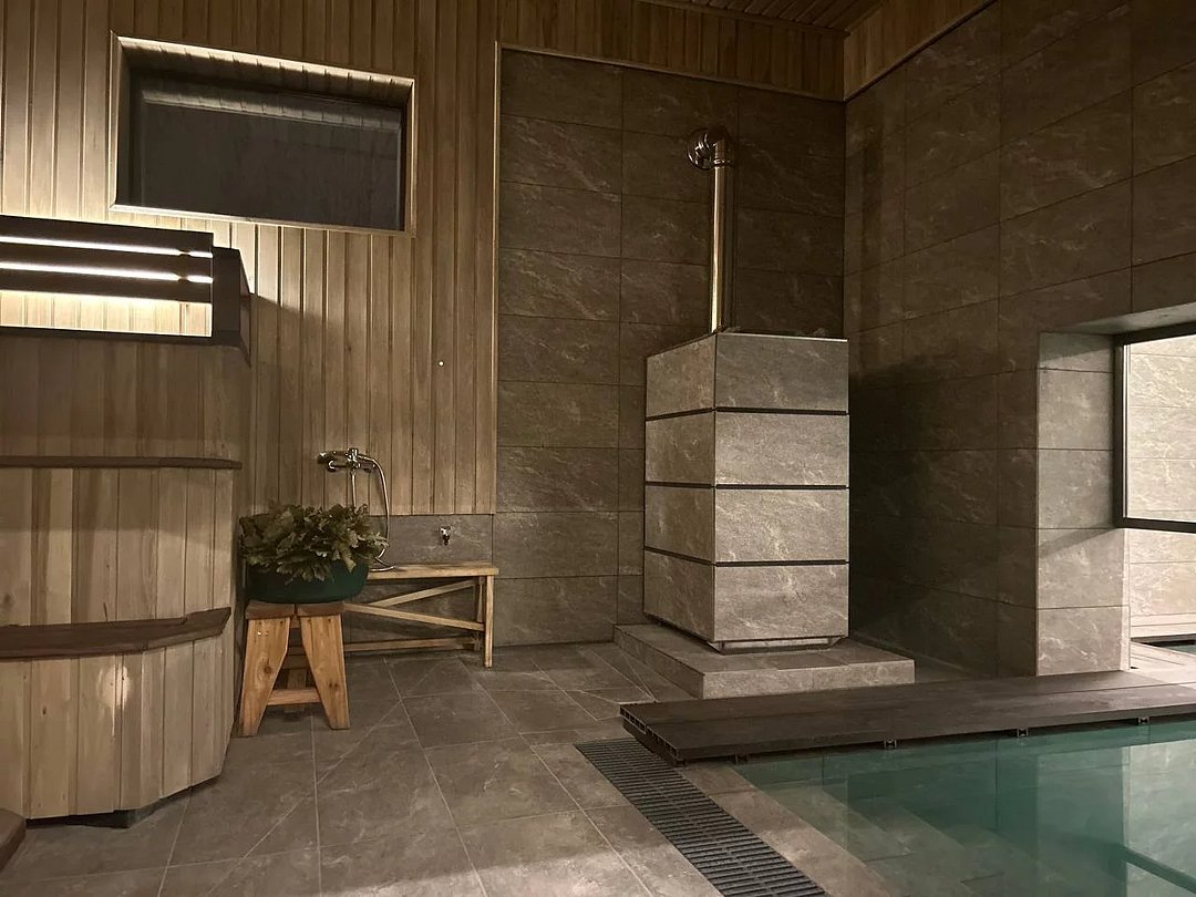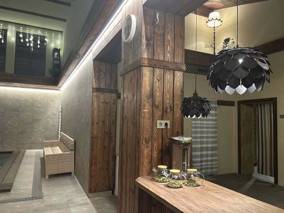 Инфраструктура: бассейн, купельБаня на 8 гостей с русской парной, теплым бассейном и купелью