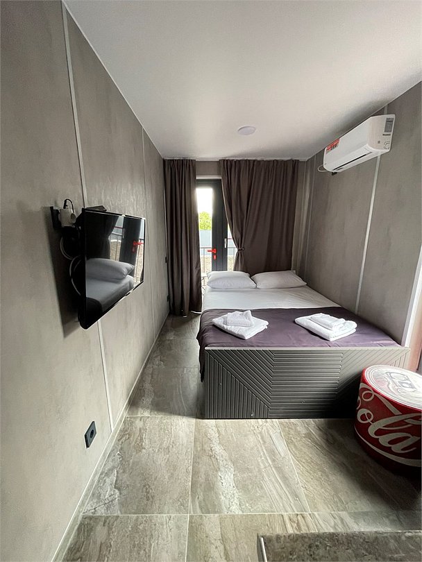 Однокомнатный номер с двуспальной кроватью — отличный вариант либо для пары, либо для одного гостя.