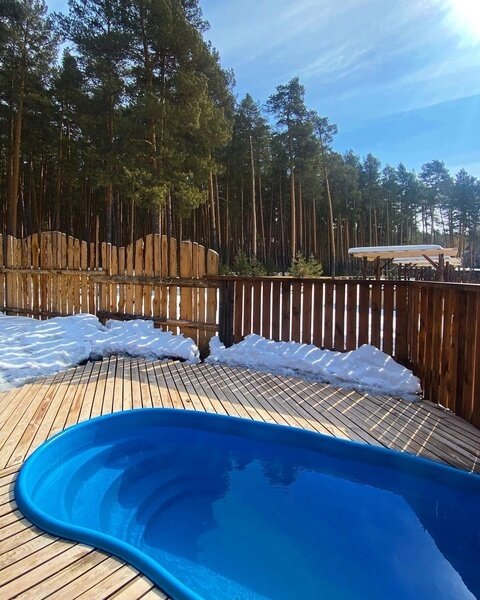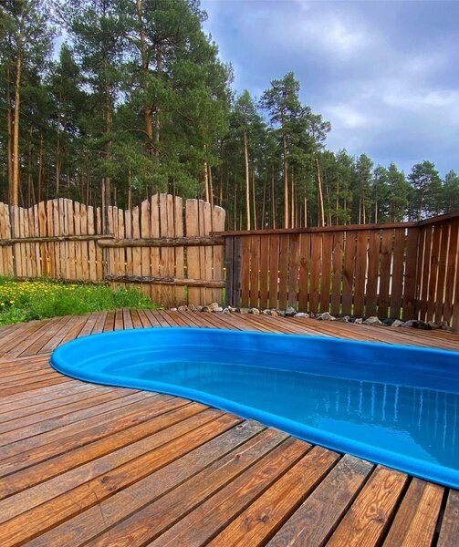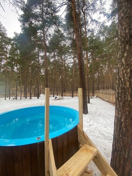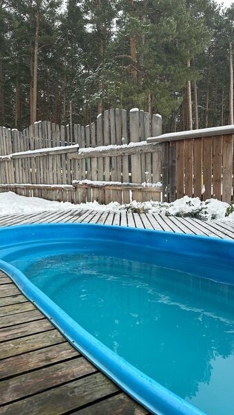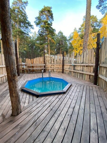 Подогреваемая купель на территории коттеджа на 16 человек.