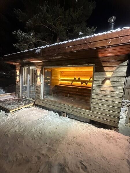 Двухэтажный коттедж на 16 гостей с 6 отдельными спальным комнатами. У коттеджа собственная мангальная зона. Внутри дома имеется сауна и подогреваемое джакузи на улице возле коттеджа (входят в стоимость на период проживания)