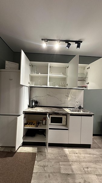 Посудомоечной и стиральной машины нет. Посуда: тарелки (глубокие и плоские), кружки, стаканы, стопки, бокалы, ложки, вилки, разделочная доска, нож, салатник, блюдо под мясо, кастрюля, сковорода. Посуда рассчитана на 4 персоны. Предоставляется так же кухонное полотенце, жидкость для мытья посуды, губки.