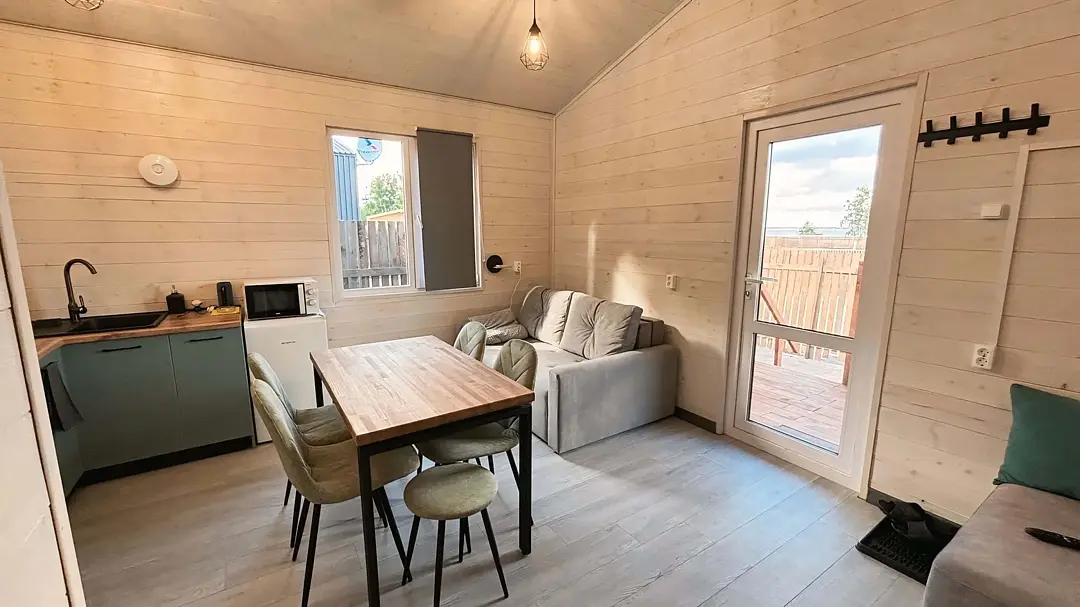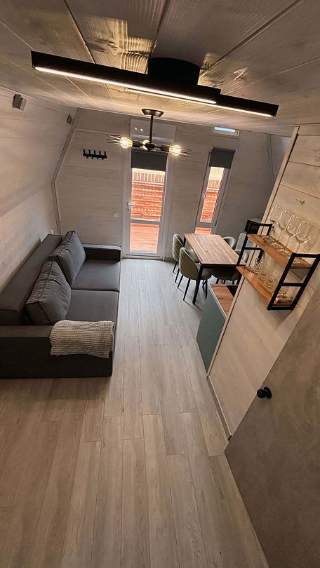 Двухэтажный дом 36 м², со всеми удобствами. Рассчитан на компанию до четырех гостей плюс два маленьких ребенка.