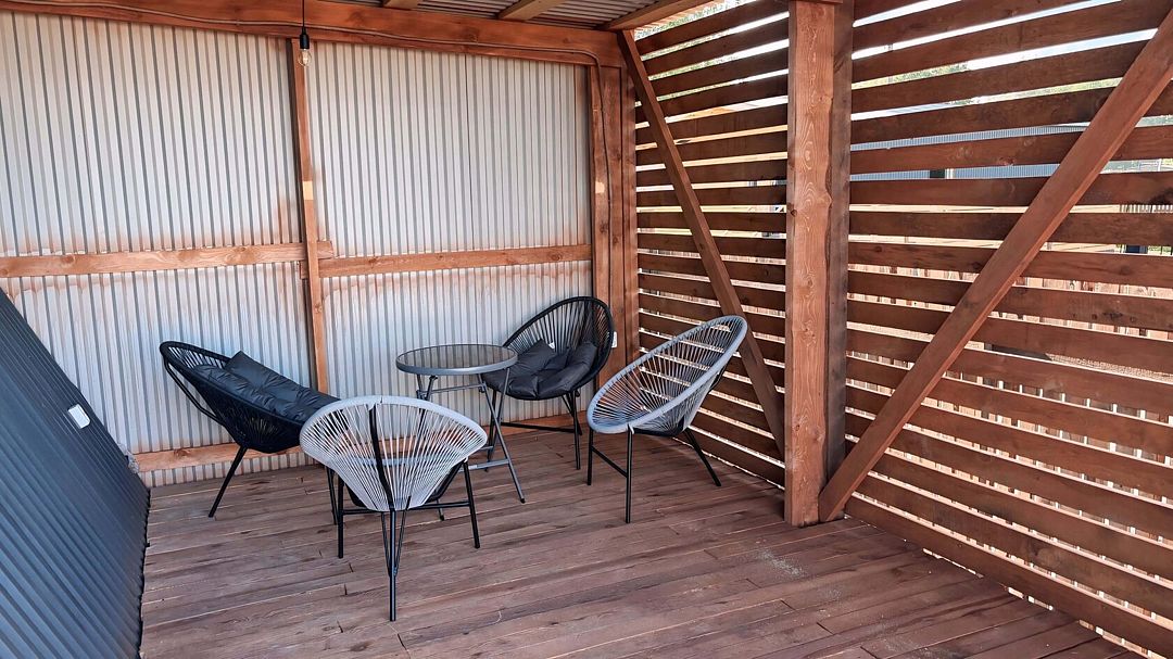 Просторные площадки для палаток, уличный туалет и уютные зоны отдыха — на территории есть все для комфортного отдыха на природе, предназначенное для ценителей кемпинга. Безопасность обеспечивается специальной обработкой от клещей, что позволяет наслаждаться отдыхом без тревог.