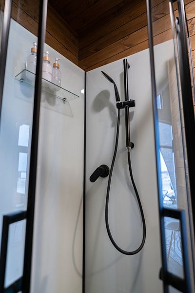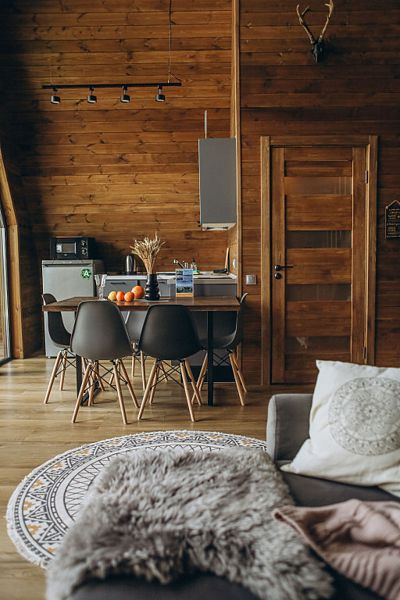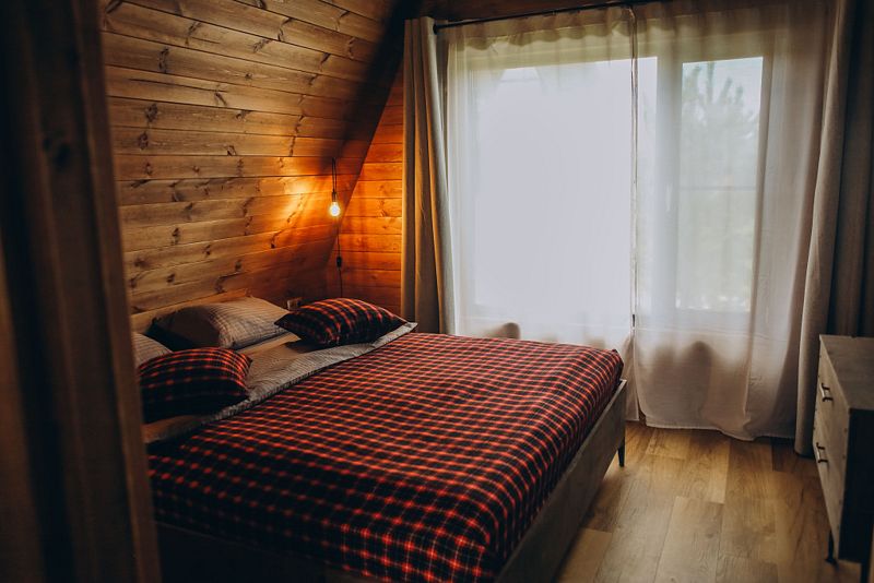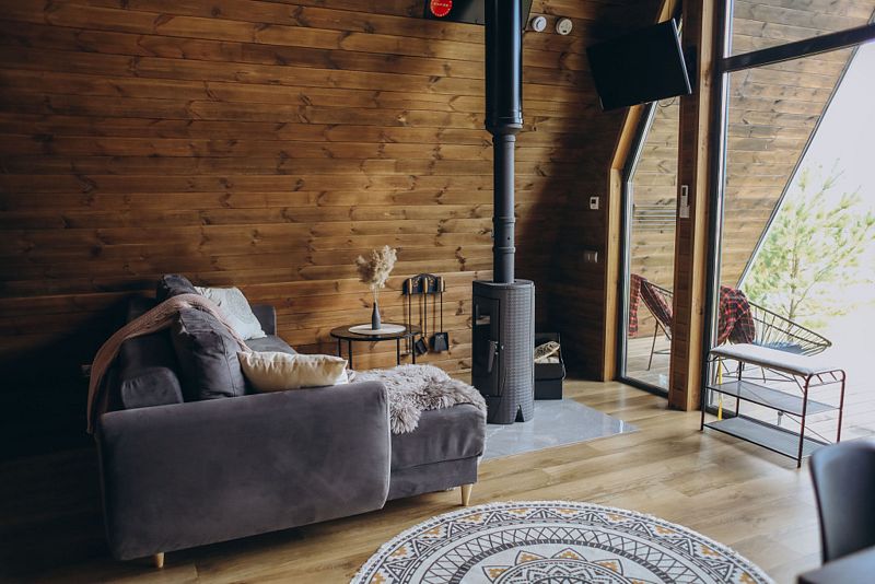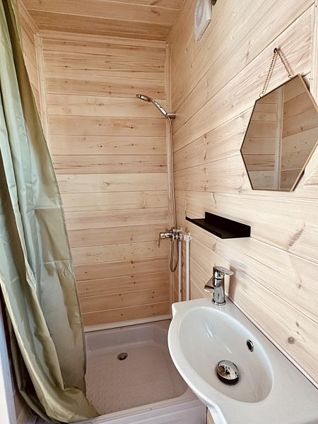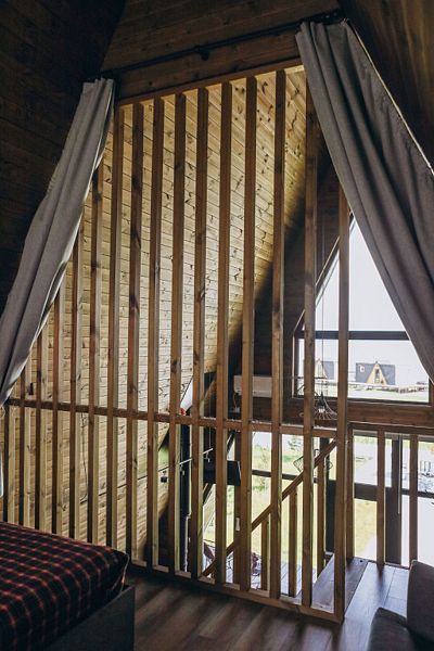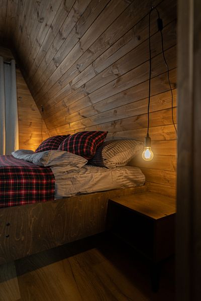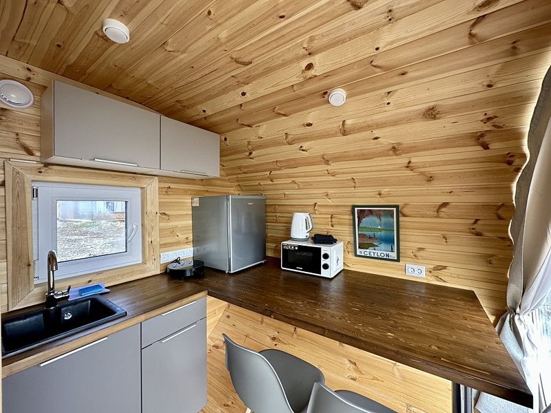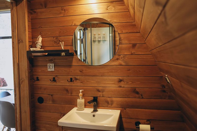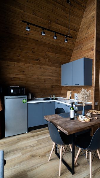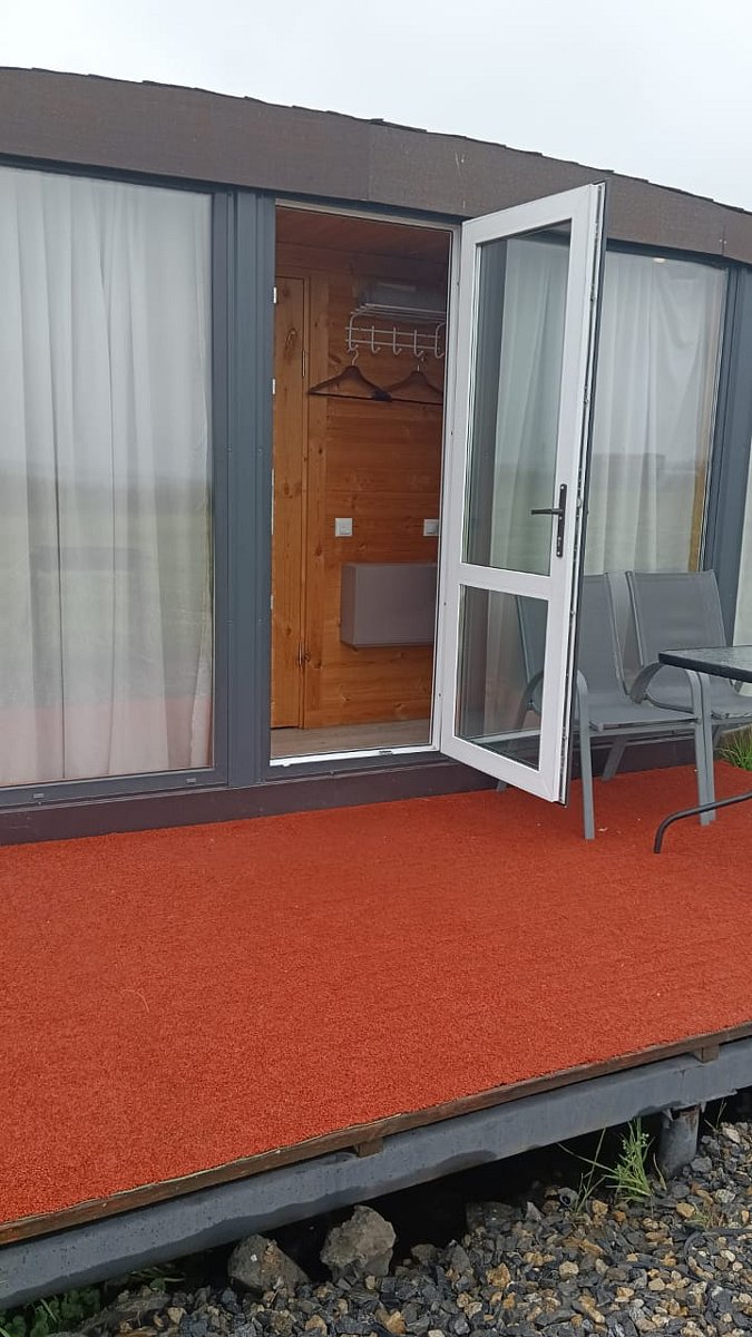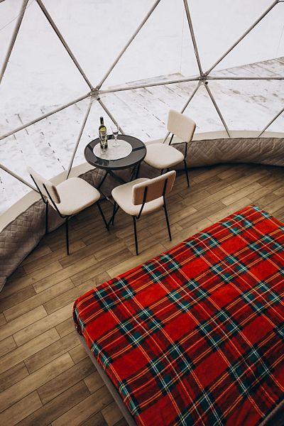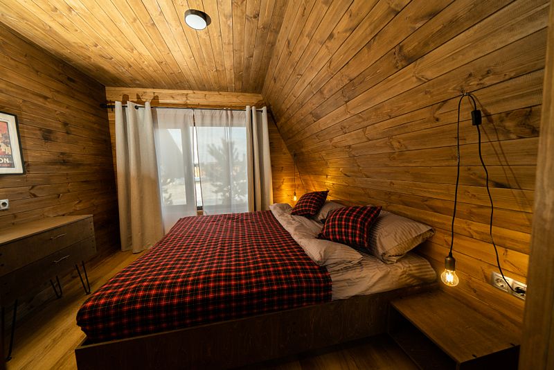 Уютный овальный домик с панорамным видом на озеро. В нем есть все необходимое для комфортного пребывания на природе.