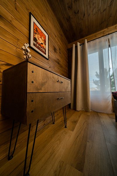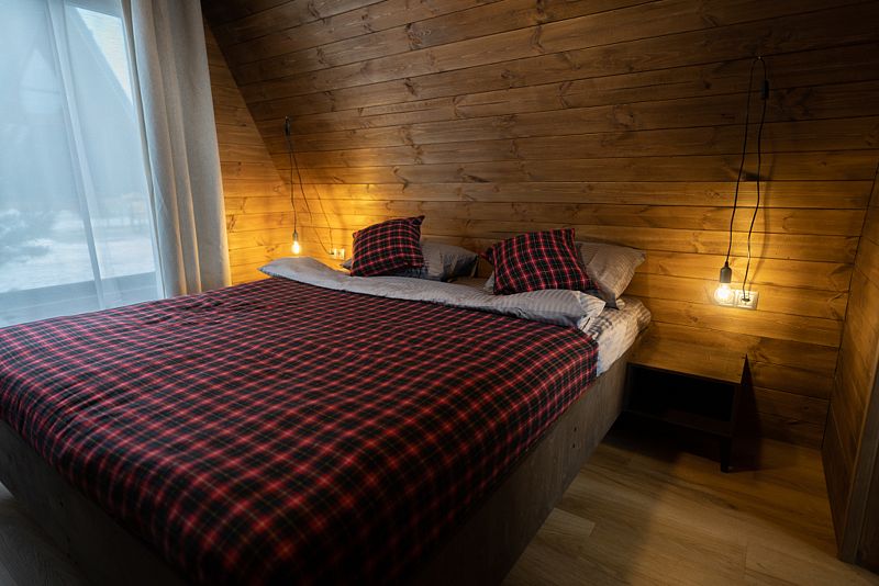 В каждом номере есть телевизор, кухня со всем необходимым для приготовления пищи, санузел с душевой кабиной, три спальни с двуспальными кроватями, гостиная с камином и диваном, а также терраса с видом на озеро. Около каждого номера есть площадка для барбекю.