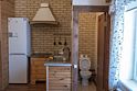 Общая гостиная с кухонной зоной (холодильник, духовка, четырехкомфорочная плита, наборы кухонной и столовой посуды), обеденный стол, угловой диван, стулья, комод; цифровое ТВ; гостевой санузел (унитаз, умывальник, зеркало).