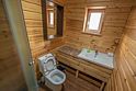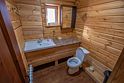 Двухэтажный дом на 12 человек со всеми удобствами. Первый этаж: 2 комнаты с двуспальной кроватью 180 х 200 см, 2 прикроватных столика с ночными лампами, комодом, косметическим столиком, стулом и санузлом (унитаз, умывальник, душ).
