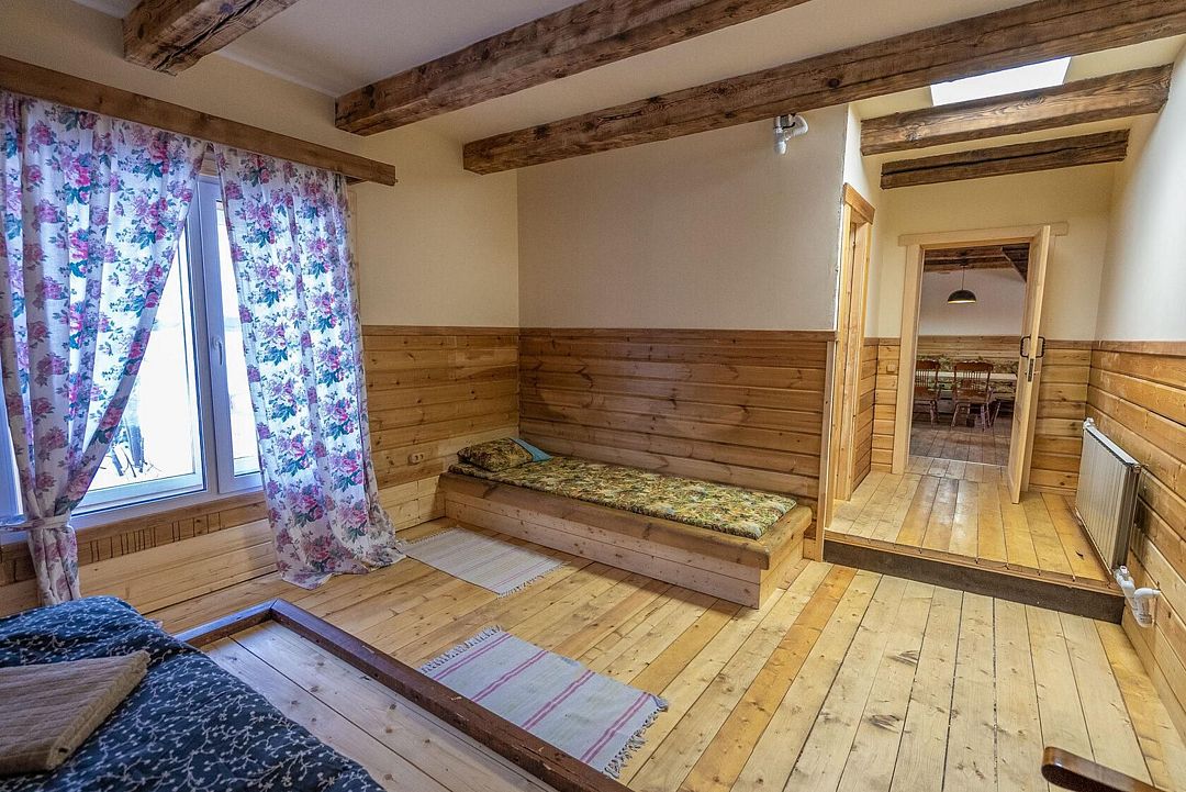 Три двуспальные кроватиВ срубе