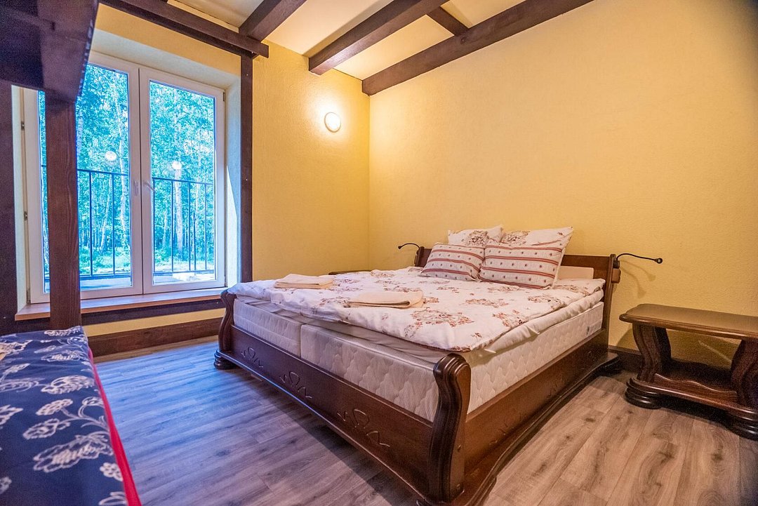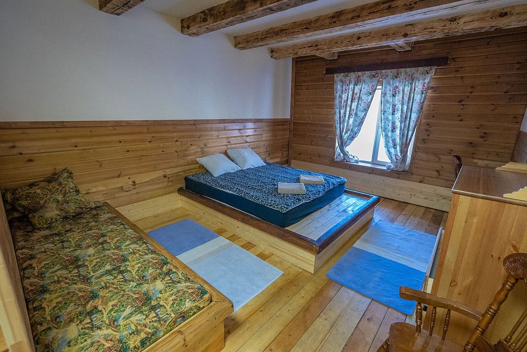 - 1 комната с двуспальной кроватью 180 х 200 см. и односпальной кроватью 180 х 90 см.