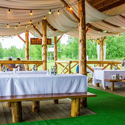 Летний бар «Beerлога» приглашает насладиться утренними завтраками и волшебными закатами, создавая атмосферу уюта и радости. Для более торжественных случаев в вашем распоряжении банкетный зал «Таверна», где можно отпраздновать важные события, наслаждаясь изысканными блюдами и атмосферой веселья, созданной современным звуковым оборудованием.