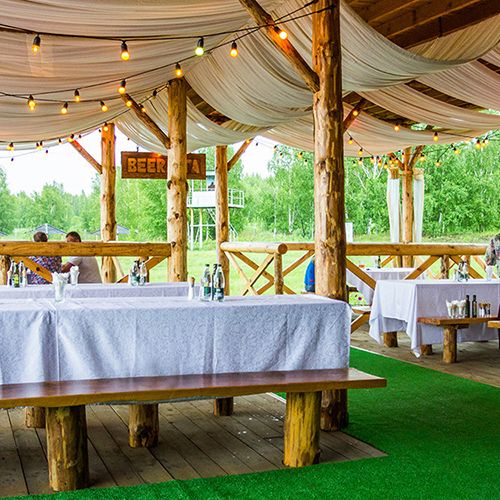 На берегу озера расположился летний бар «Beerлога», который дарит своим гостям радость утренних завтраков и незабываемые закаты. Это место подходит для организации праздничных мероприятий, таких как дни рождения, банкеты и свадьбы.