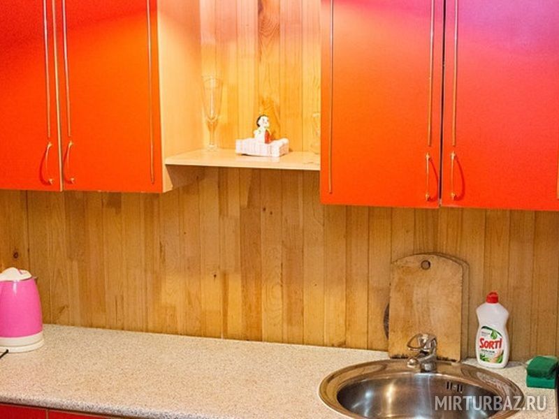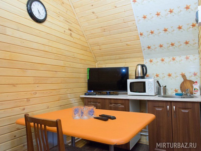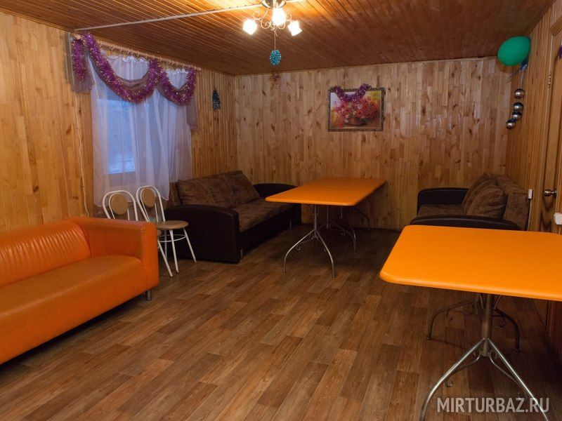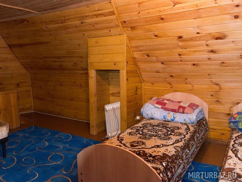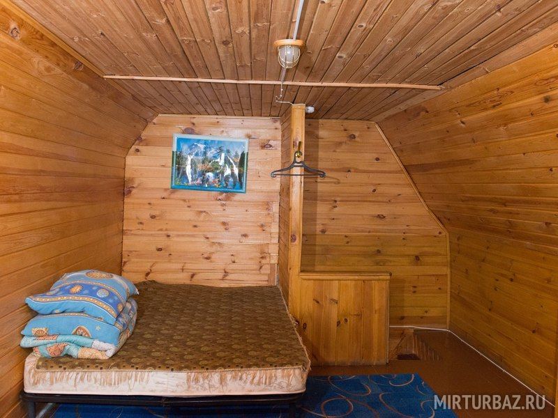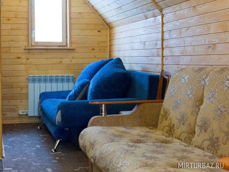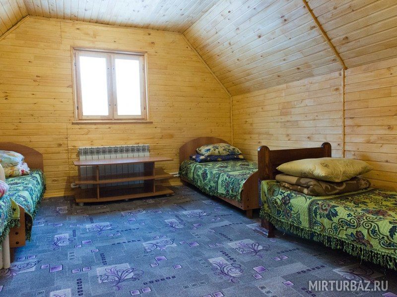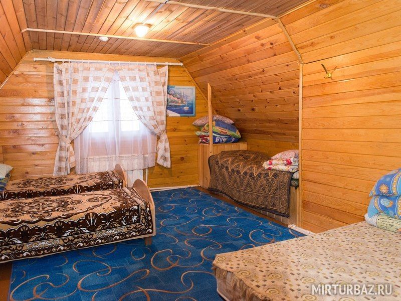 Уютный дом 2 этажа, На первом этаже гостиная c 2 двухспальными диванами небольшая кухонная зона, ТВ, холодильник. На втором этаже спальня на 5 человек. Удобства и горячая вода в доме.