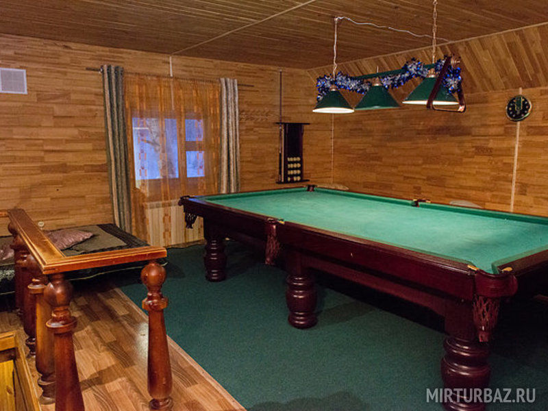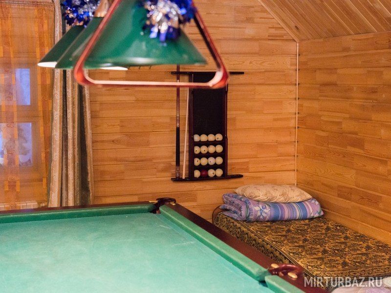 Большой, просторный дом со всеми удобствами для дружной компании. На втором этаже 2 комнаты с 2ми односпальными кроватями в каждой и большая зал с бильярдом + 2 односпальные кровати и 2-х спальная кровать в нише. На первом таже сан/узел, кухонная зона, зал с 2 двухспальными диванами, сауна, душ.