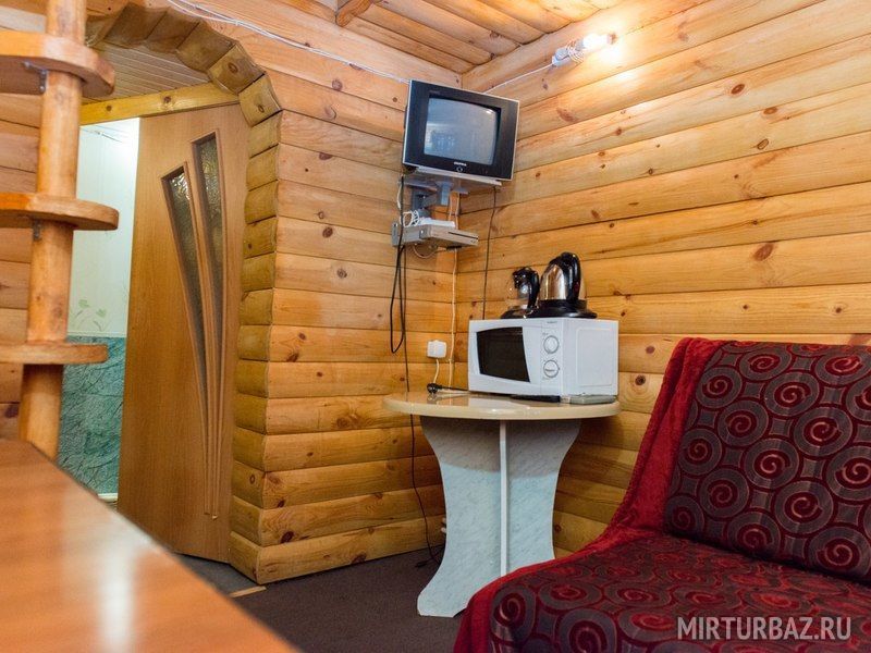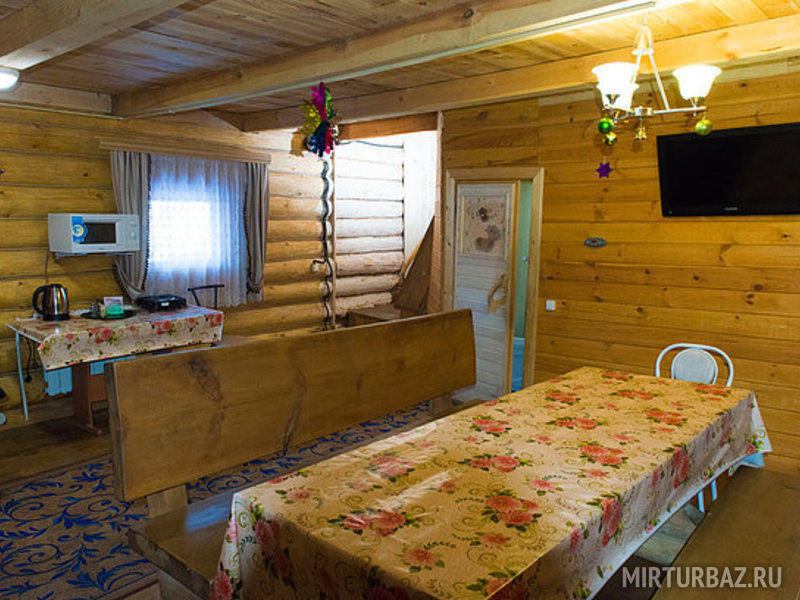 Дом отлично подойдет для семьи или пары. Небольшой, но уютный. Особенность дома — это полати над комнатой первого этажа. На первом этаже, так же имеется 2-х спальный диван.