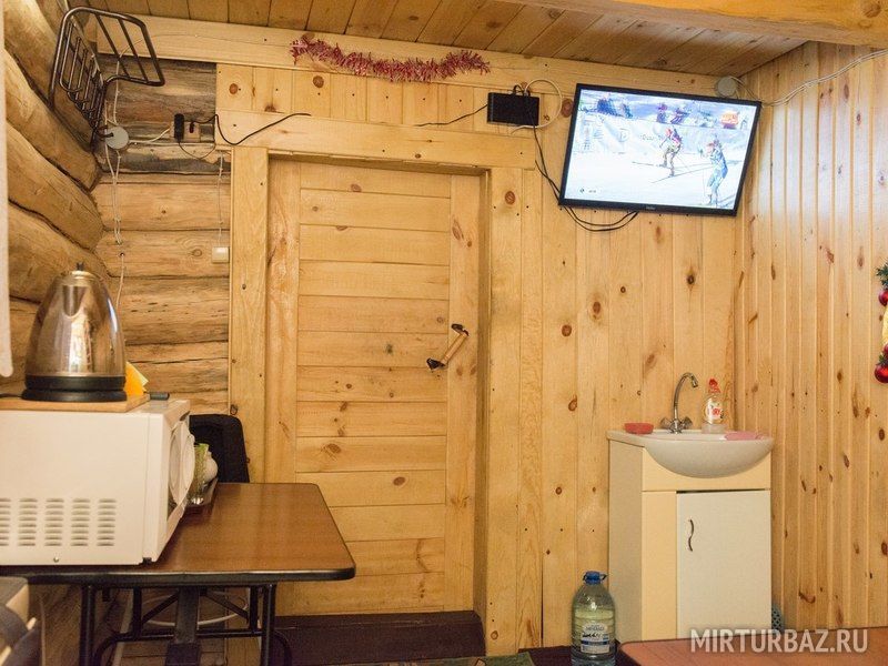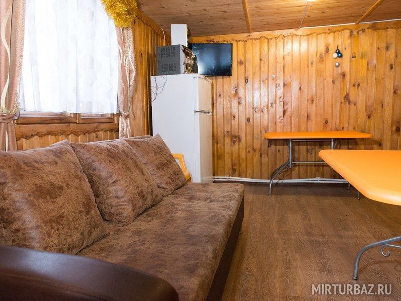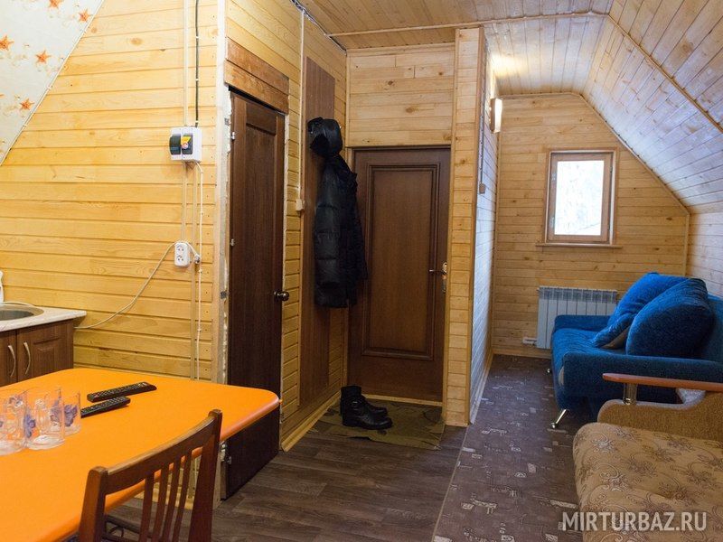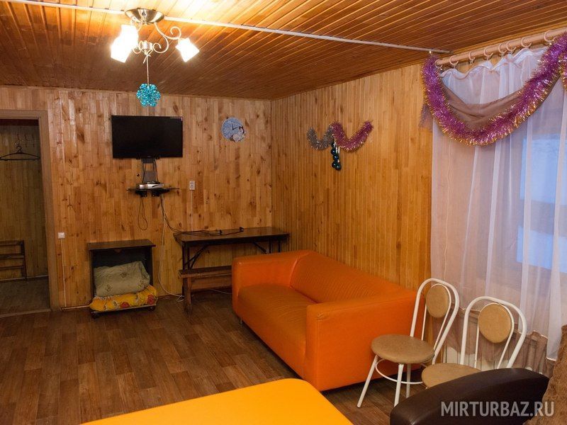 Очень теплый и уютный. Номер располагается над зданием проката. Две комнаты. В одной 4 односпальных кровати. Во второй кухонная зона и два двухспальных дивана. Так же имеется сан/узел, душ.