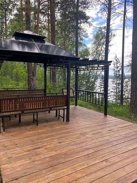 К слугам гостей: подогреваемый бассейн, беседки с мангальными зонами, детская площадка, парковка, прокат лодок и сап-бордов, рыбалка, баня, сауна, понтон для купания в озере и многое другое.