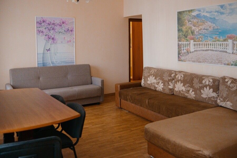 Улучшенные апартаменты 53 кв.м. № А1, №А2 размещение до 6 человек, находятся на первом этаже корпуса.