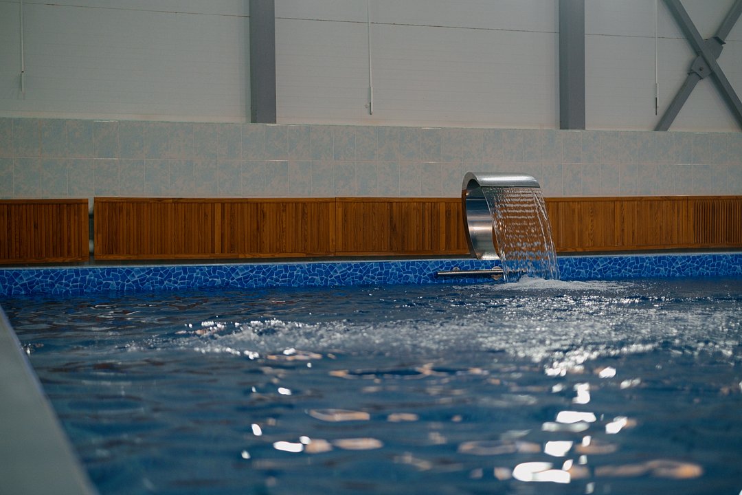Читать полностьюКрытый подогреваемый бассейн с противотоком, каскадом, водным фонтаном и детской зоной.