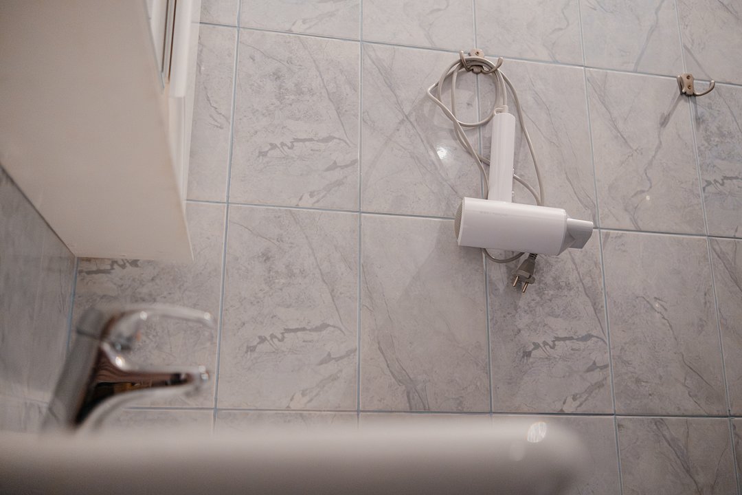 - Можно приехать с воспитанными собаками. К сожалению, с кошками проживание не допускается. На месте оплачивается сбор за доп. уборку — 500 ₽/сутки.