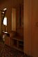 В спальне двуспальная кровать, прикроватные тумбы, шкаф для одежды.