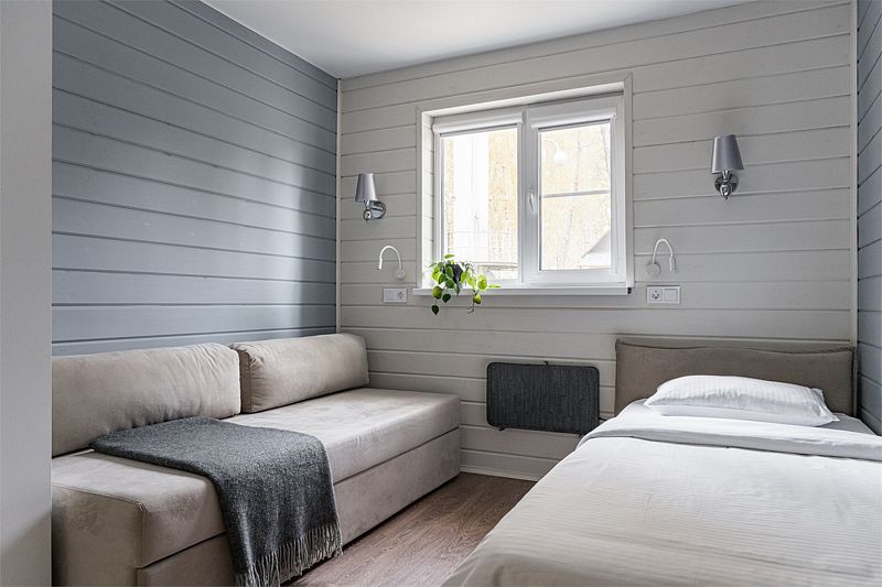 Одноэтажный деревянный коттедж категории 3 *** с современной мебелью и дизайнерским интерьером и ремонтом произведенным в мае 2022 года. Две комнаты, кухня, ванная комната с душем. В одной комнате кровать 160*200, в другой диван 145*200 и односпальная кровать 90*200, а так же удобные места хранения для ваших вещей, если вы планируете длительное длительный отдых. Комфортный сон Вам обеспечат ортопедические матрасы и жалюзи со 100% затемнением. Современная кухонная техника поможет облегчить Вам приготовление любимых блюд и сделает Ваш отдых максимально комфортным.