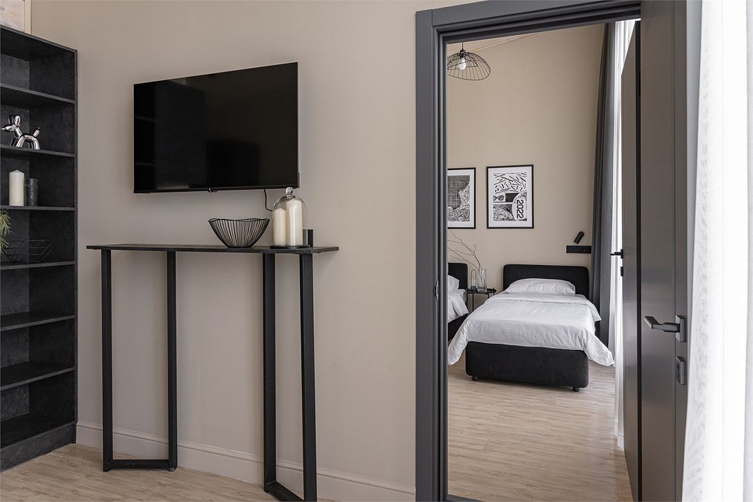 две односпальные кровати трансформера 90*200,которые при необходимости раздвигаются на два спальных места, что позволяет создать отдельные спальные места для детей, так же удобные места хранения для ваших вещей, если вы планируете длительный отдых. Комфортный сон Вам обеспечат ортопедические матрасы и шторы блэкаут со 100% затемнением. Коттедж предназначен для отдыха семьи из двух гостей, (при бронировании одной половины) и 4 человек при бронировании коттеджа полностью.