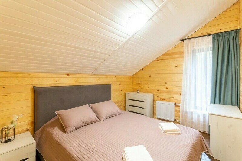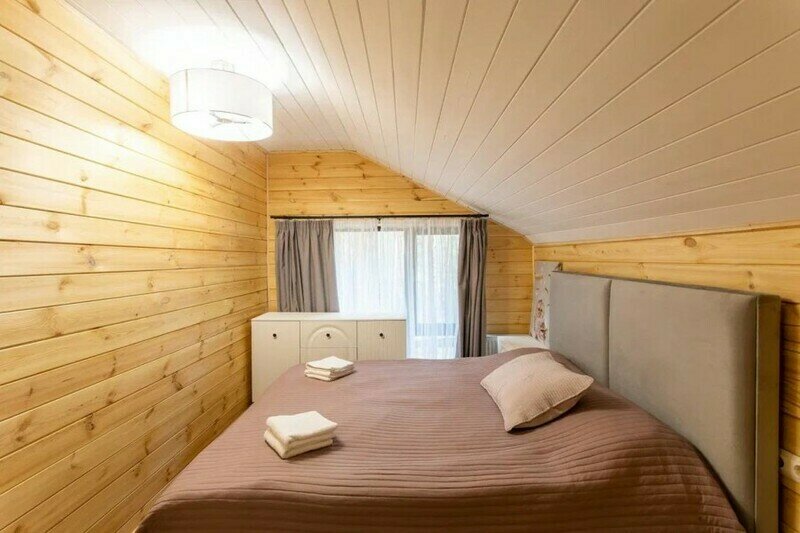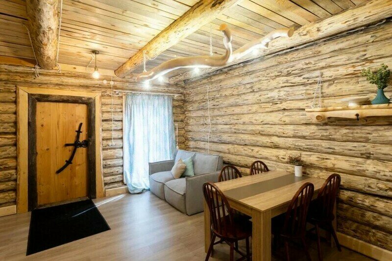 Построенный по старорусской технологии с применением современных технологий. Запах дерева и эстетика русской избы. Удаленность от суеты и шума, только природа и пение птиц.