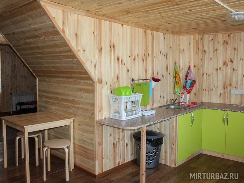 Второй этаж (мансарда): 4 отдельные кровати, стол, лавка, чайник электрический.