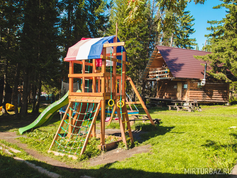 На территории комплекса установлена детская площадка, оборудованы мангальные зоны и скважины с чистой питьевой водой. Туалет находится в отдельном теплом помещении.