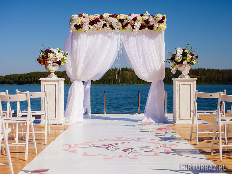 В стоимость услуги входит:- Площадка для проведения церемонии (на выбор: терраса ресторана "7Небо", пирс или пляжная зона, крытая беседка, площадка перед корпусом №1);