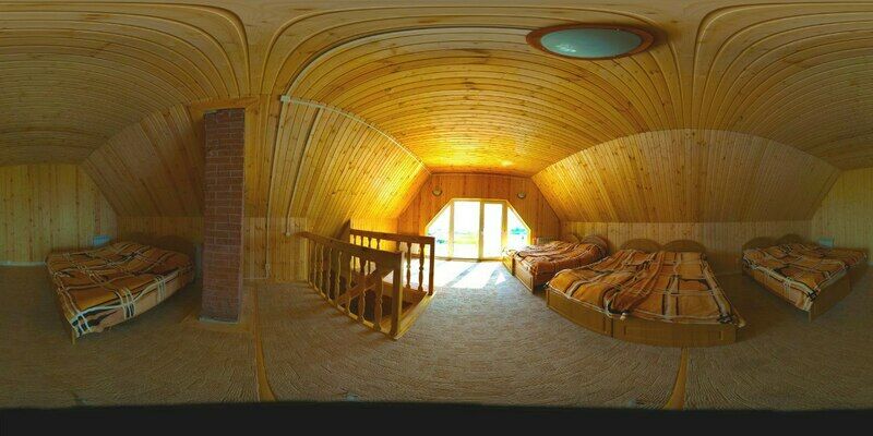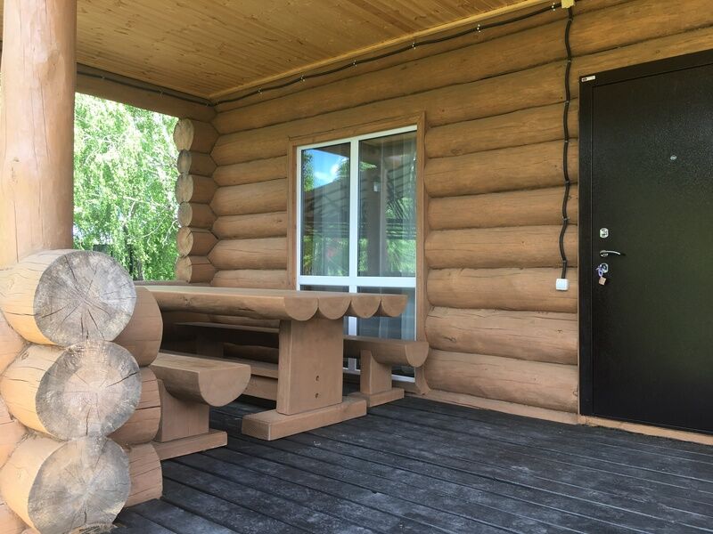 Коттедж на берегу озера Касарги из бруса. Перед домом веранда с большим столом и скамейками, мангальная зона. На первом этаже: кухня-гостиная с большим столом, душ/санузел. На втором этаже 5 комнат с 2-х спальными кроватями.