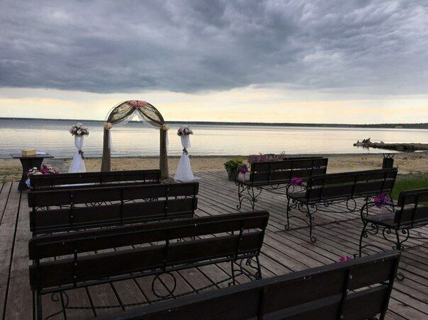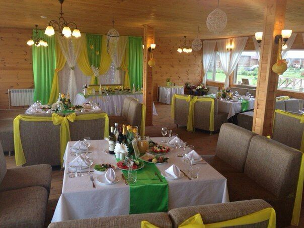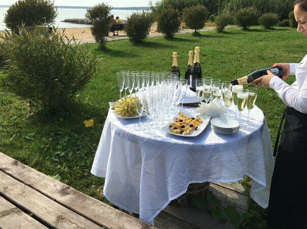 Банкетный зал на берегу озера Касарги. Средний чек 1500-2000 руб/чел. Меню есть в группе в вк. При заказе от 50тыс.руб. допускаются напитки заказчика.