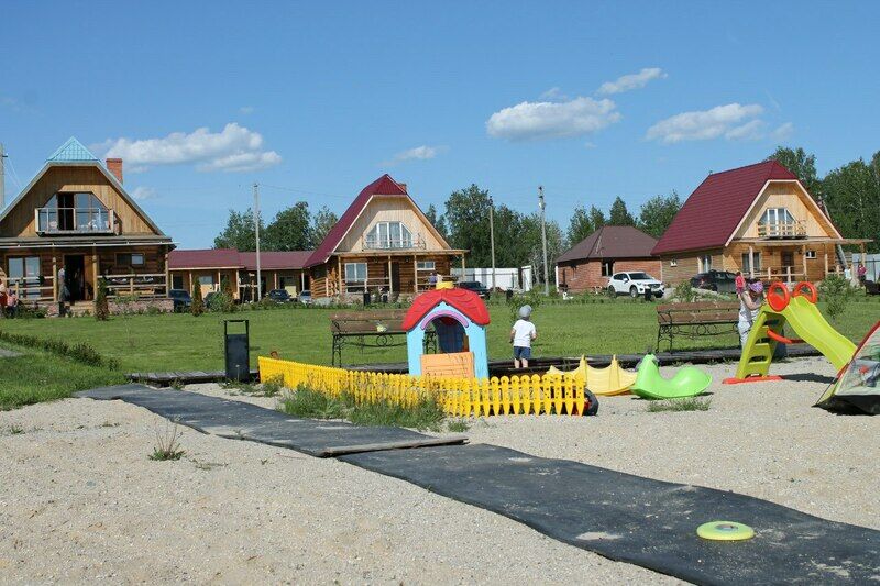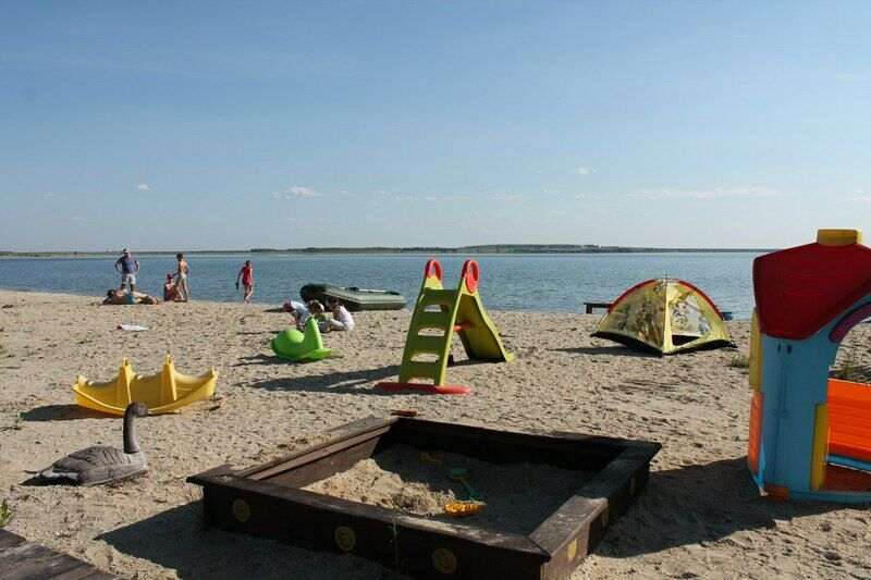 На берегу озера имеется детская площадка.