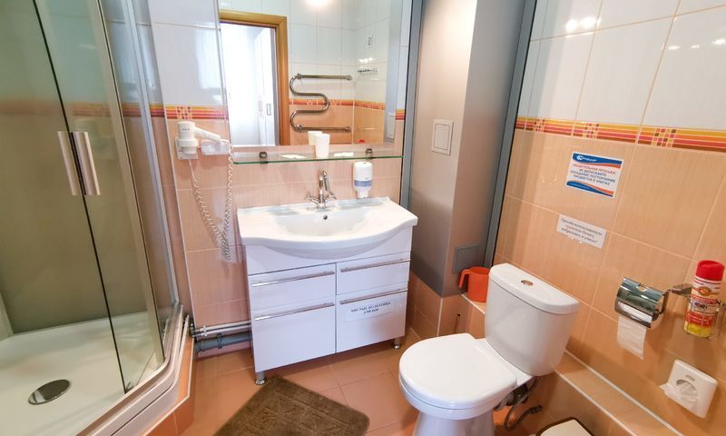 - собственная ванная комната с душем и туалетными принадлежностями,
