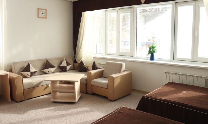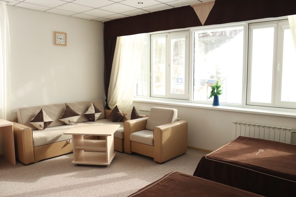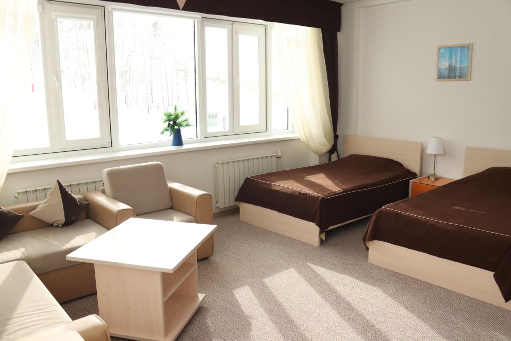 Количество номеров: 1 однокомнатный номер на 4 человека. 1 двухкомнатный номер на 16 человек.