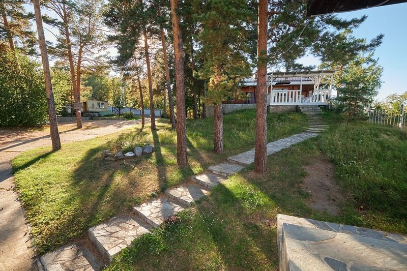 На территории имеется беседка с панорамным видом откуда открывается прекрасный вид на озеро Увильды.