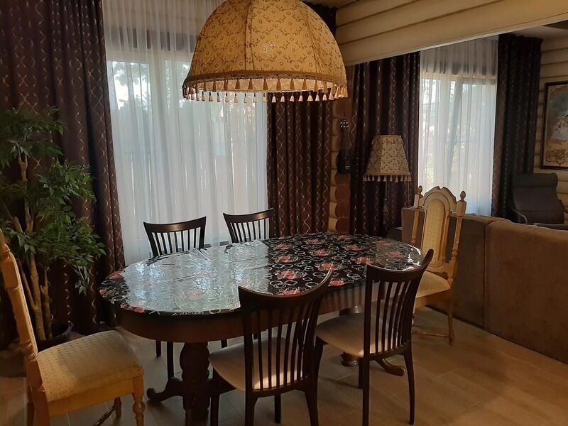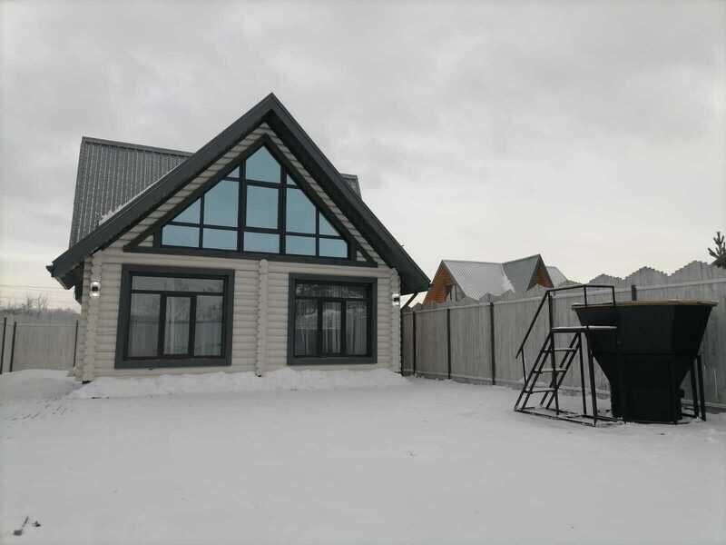 Новый двухэтажный дом-баня из бревна площадью 120 кв.м. с собственной территорией и видом на ГЛК Солнечная Долина. В доме три спальни и холл. Русская баня прямо в доме - очень удобно!