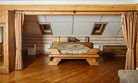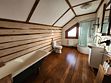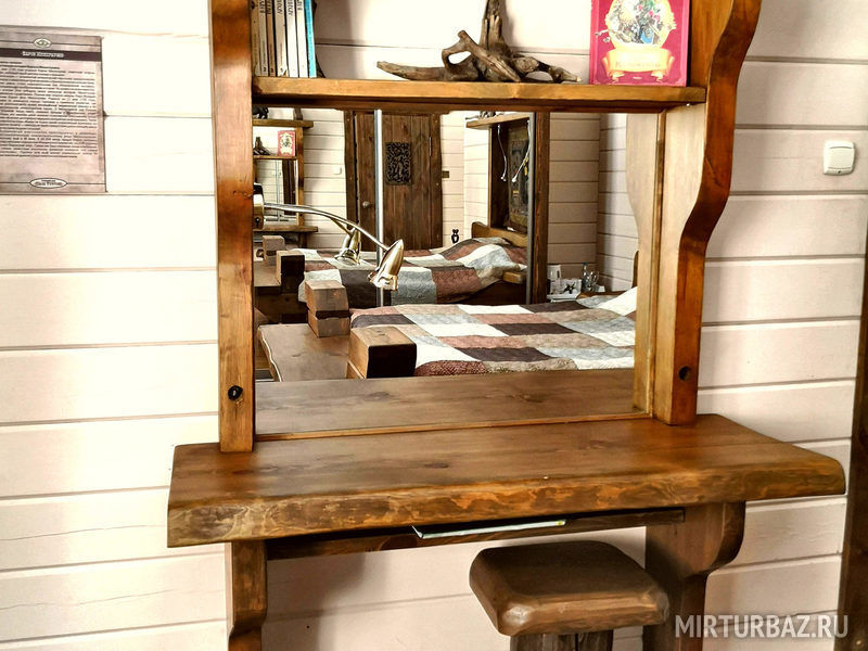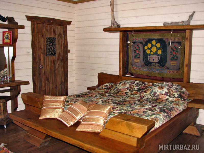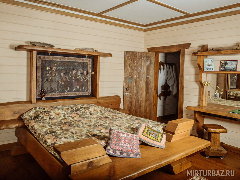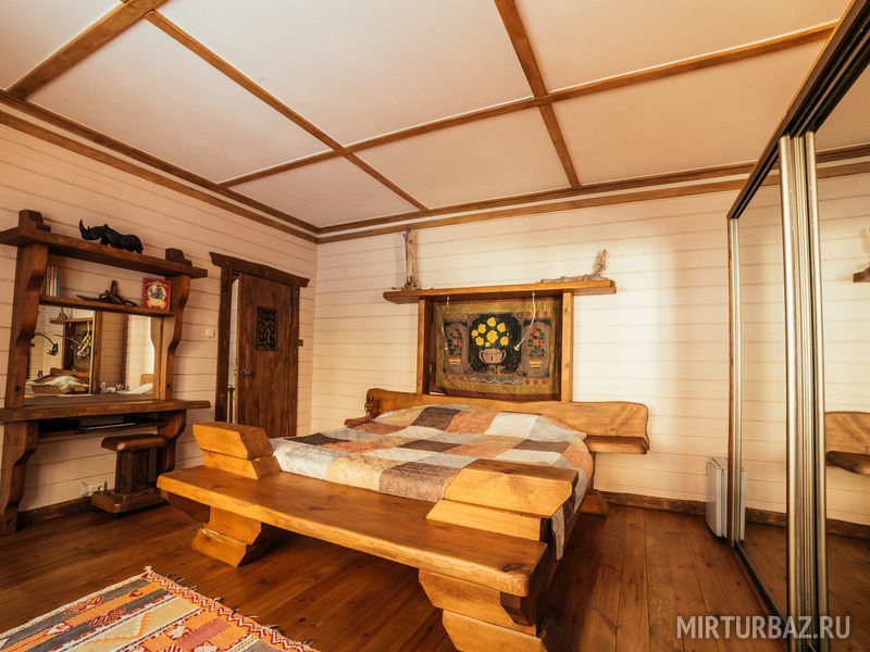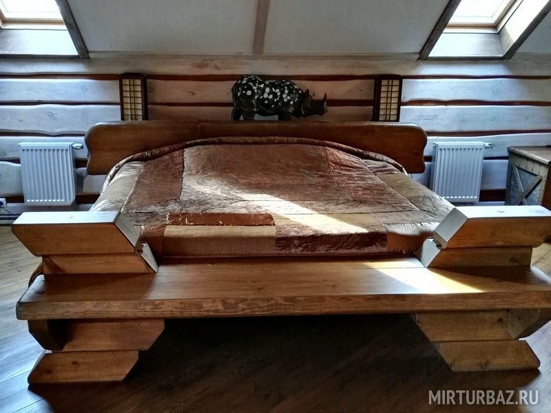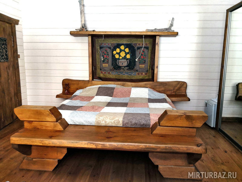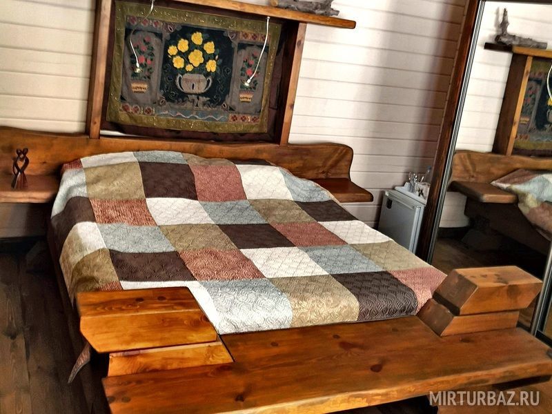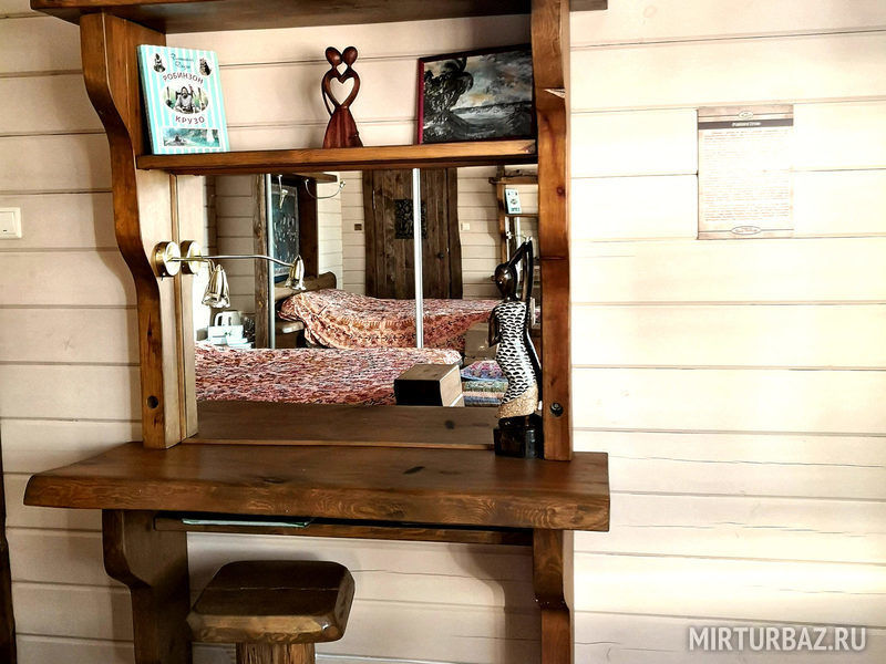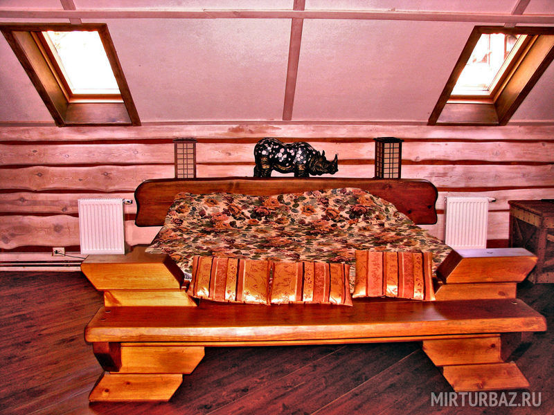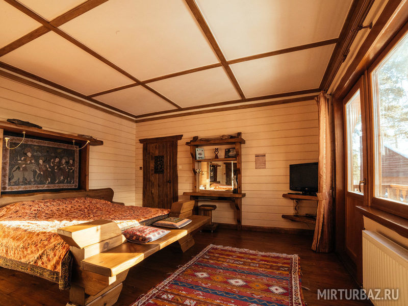 «Робинзон Крузо» — двухместный номер 32 м² с ванной и душевой кабиной, телевизор (спутниковое ТВ), вид на озеро Тургояк. Балкон. Второй этаж. Большая двуспальная кровать.