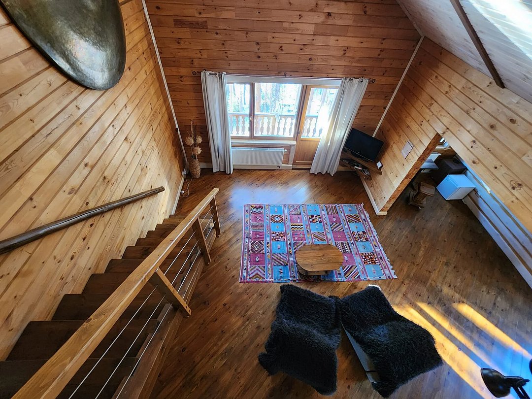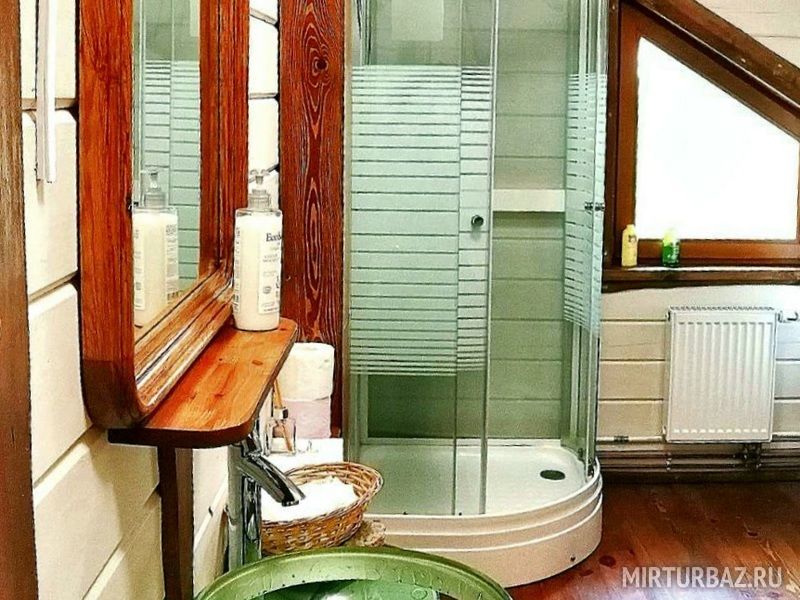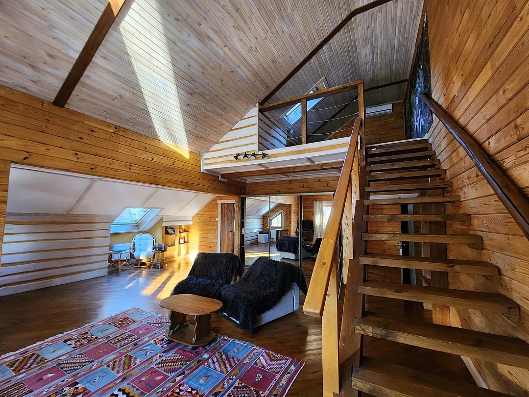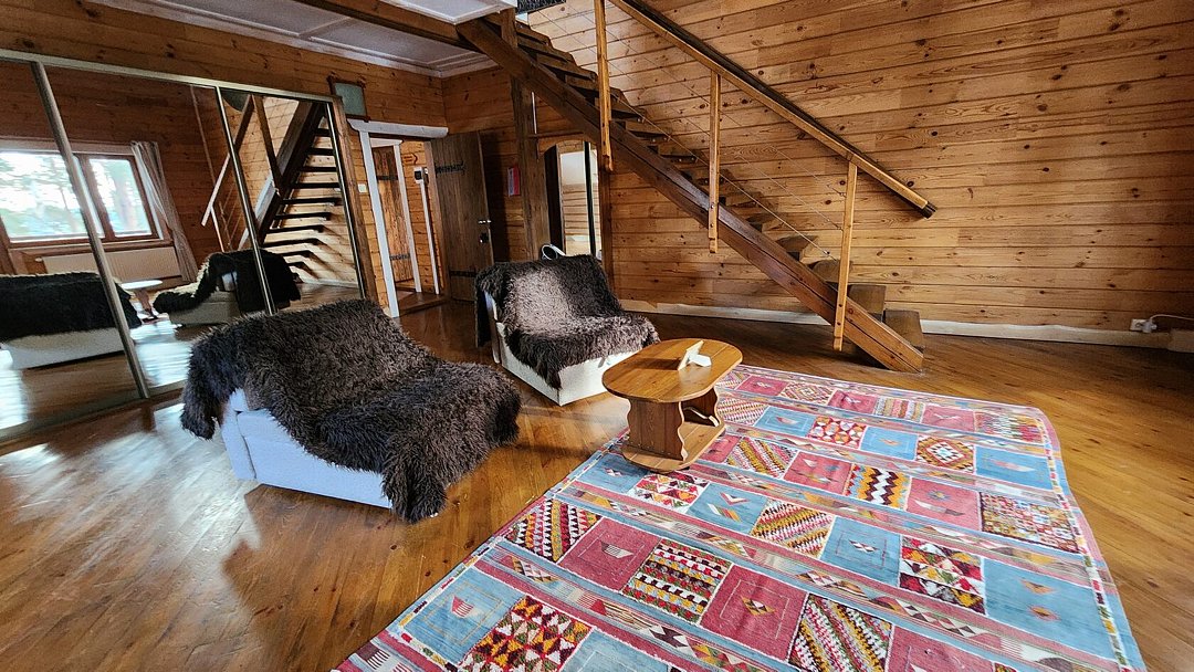 Дом на берегу озера Тургояк в стиле шале. Первый этаж - общее пространство с барной стойкой, камином и большим общим столом для трапезы. Есть небольшая кухня, оборудованная всем необходимым для приготовления пищи. В доме 5 отдельных номеров, которые расположены на втором и третьем этажах. В каждой из них большая двуспальная кровать, есть возможность размещения детей на дополнительных местах.