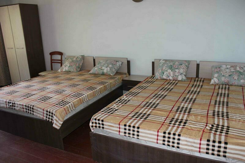 В номере: 4 односпальные или 2 двуспальные кровати, холодильник, стол. Номер рассчитан до 4-х человек.