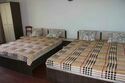 В номере: Две двуспальные кровати, диван, кухонная зона: холодильник, микроволновая печь, чайник, стол. Номер рассчитан до 4-х человек, с возможностью одного дополнительного места.