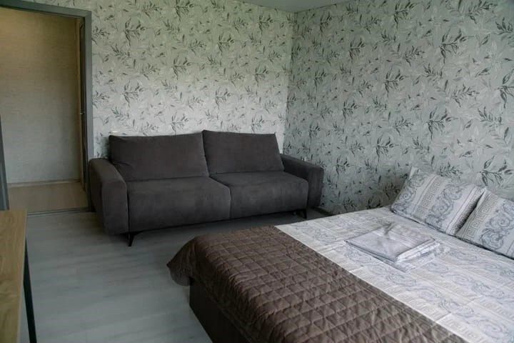 Двухэтажный коттедж: кухня-гостиная с раскладными диванам и двуспальной кроватью.