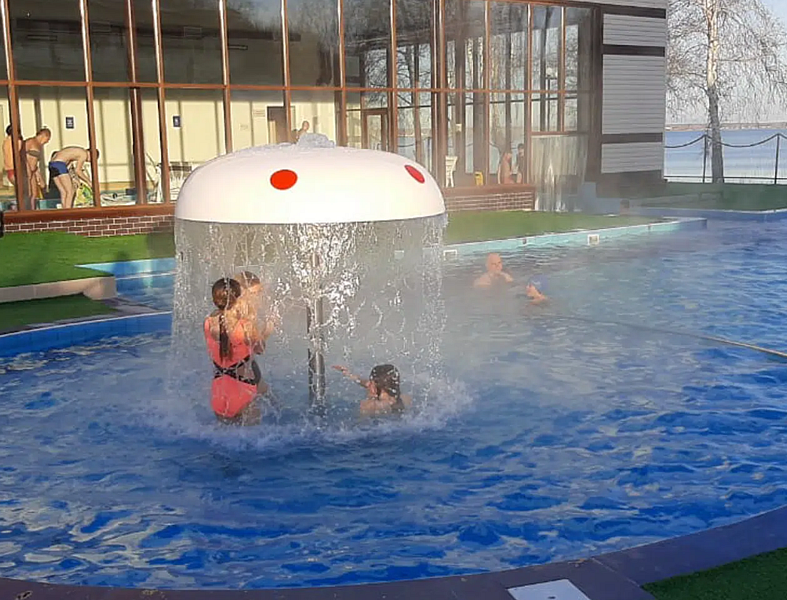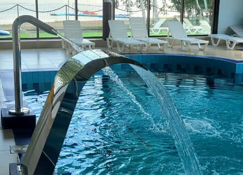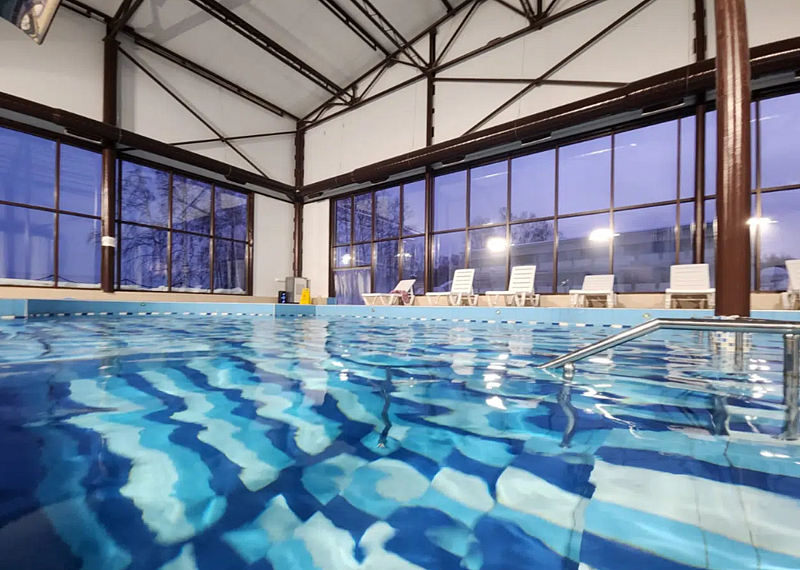 Большой бассейн в теплом помещении, отличное место для купания всей семьей. Встроенные массажеры, водопады и зона джакузи — необычные водные развлечения, которые никого не оставят равнодушными. В комплексе бассейна имеется сауна. Для маленьких гостей расположена специальная детская зона с безопасным ограждением. Температура воды комфортная, приятная.В стоимость билета включено: