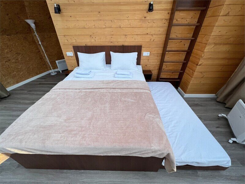 Одна двуспальная кровать, одна диван-кроватьВ эко-доме
